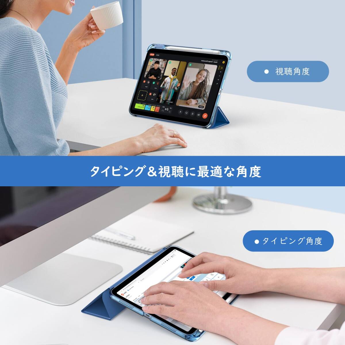 「便利なスタンド仕様」スタンド立てかける際に、タイピング角度と視聴角度に両方対応で、両手解放で動画鑑賞を楽々に楽しめ、仕事やゲームなどもっと快適に進められます。