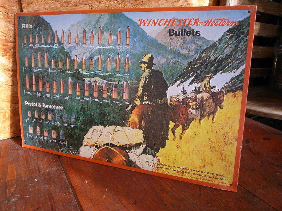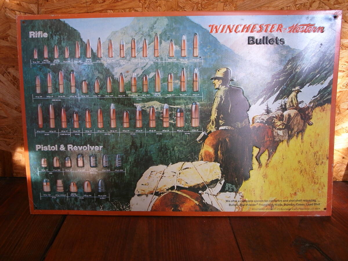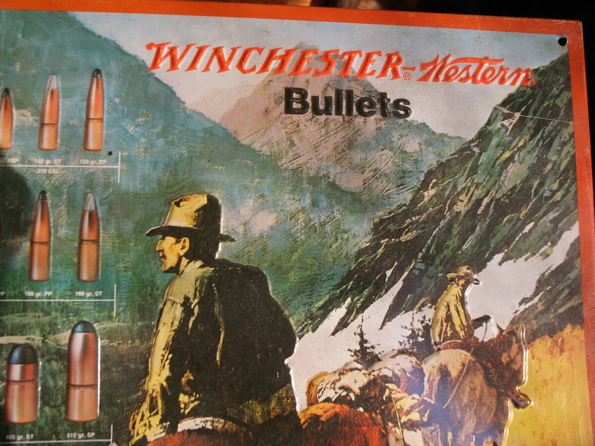 | ★ USA ビンテージ コレクティブル エンボス加工(凹凸のある) オリジナル WINCHESTER Western Bullets メタル広告看板 新品未使用 ★ | ||