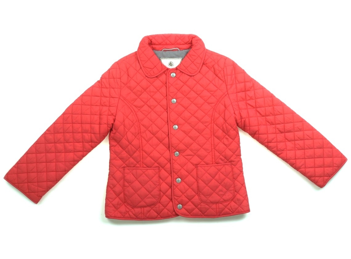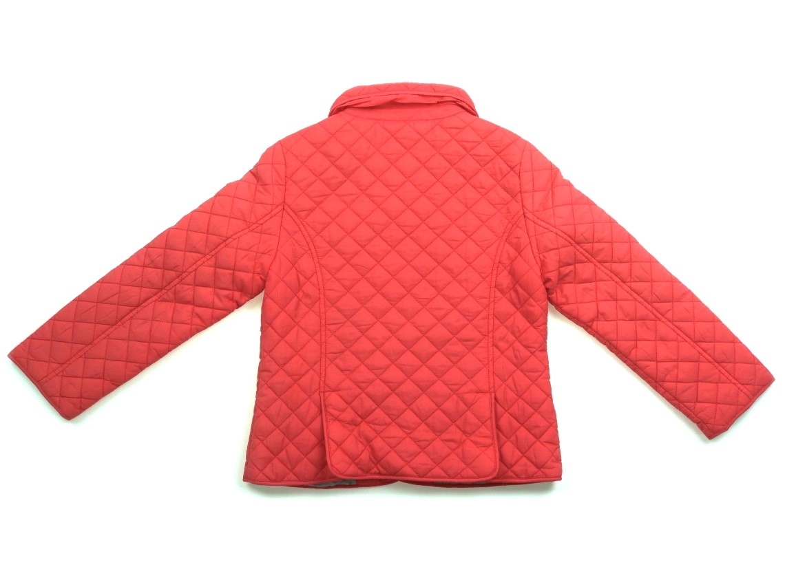 ナイロン素材。中綿入り。実際のサイズ表記は、114cm。スナップボタン開き。ブランドタグにシミあり。袖口が薄く汚れています。薄い汚れや糸つれ・傷が複数見られます。