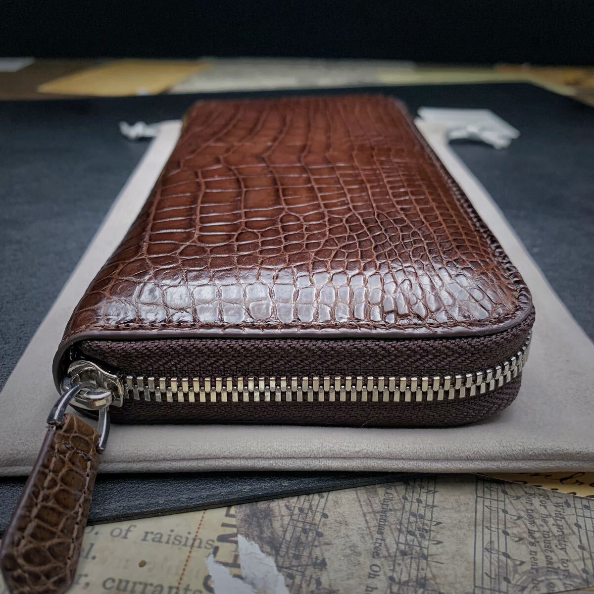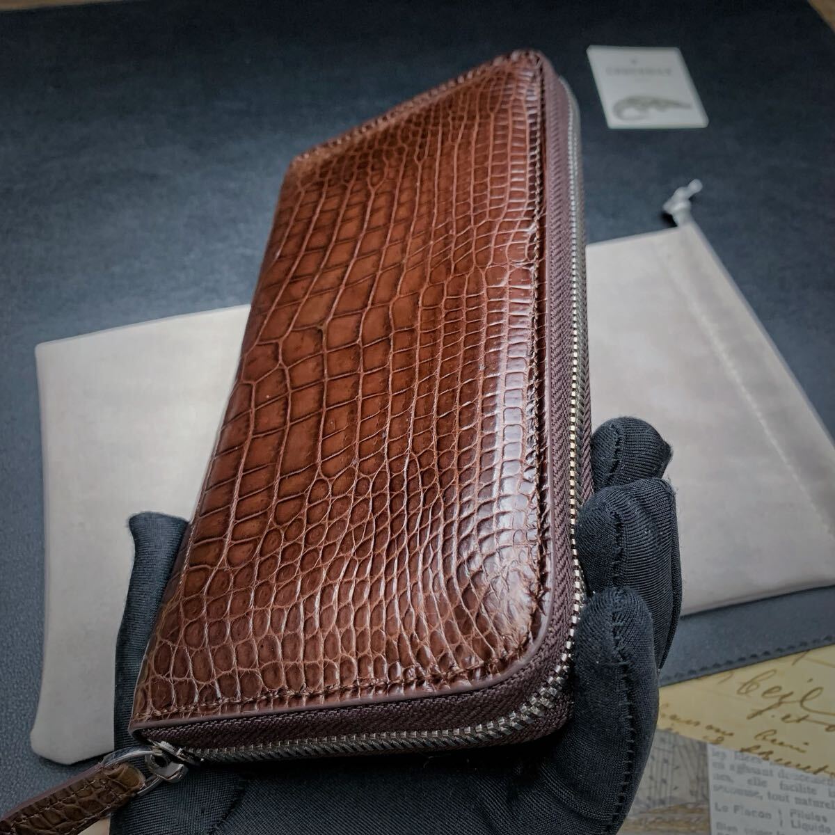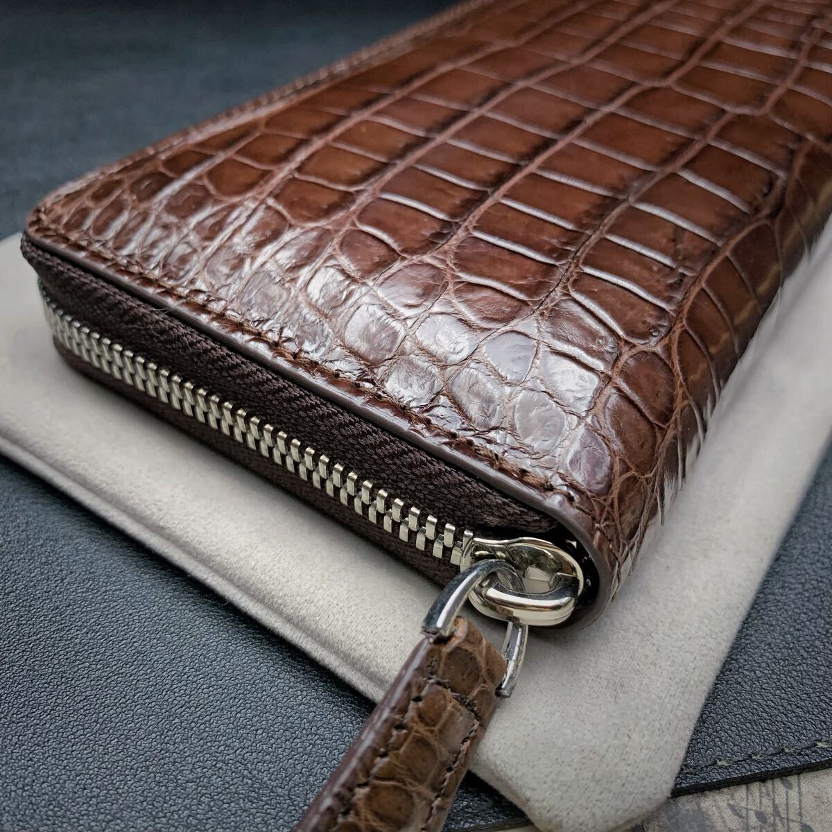 ・クロコダイルと呼ばれている品種のワニ革は人気が高く、独特の模様と凹凸が魅力で、高級ブランド品を中心にクロコダイルが多く使われています。今回はワニ革の代表格である『シャムクロコダイル』のセンターカット腹革のラウンドファスナー財布を出品します。