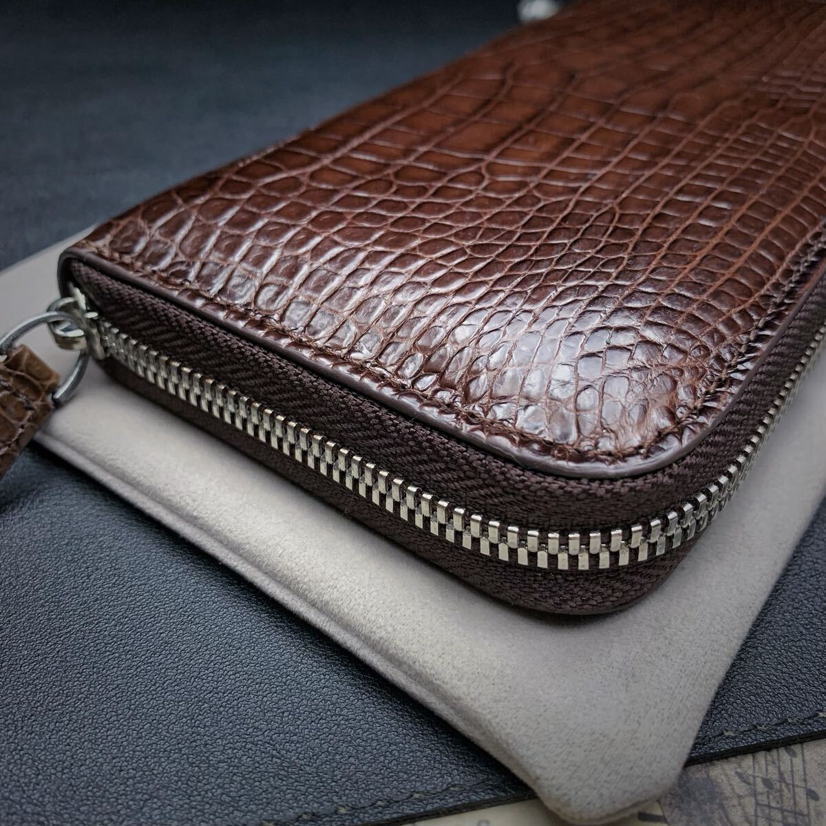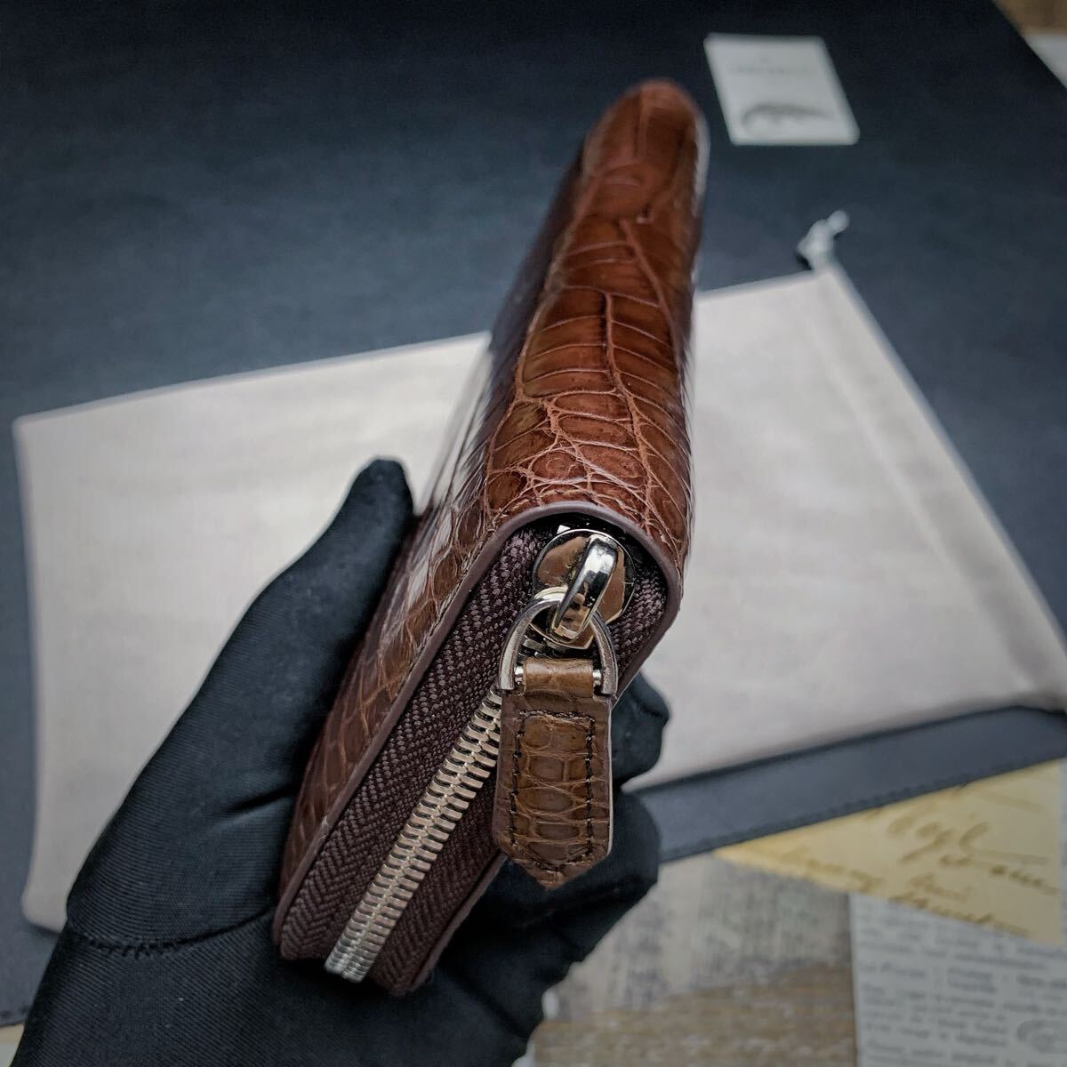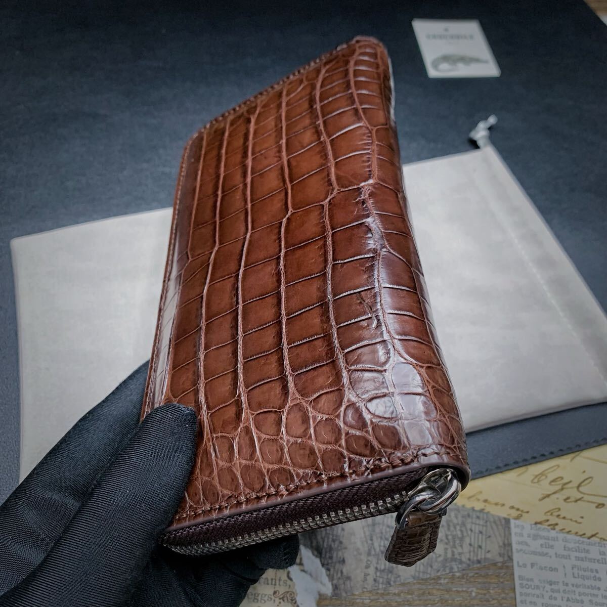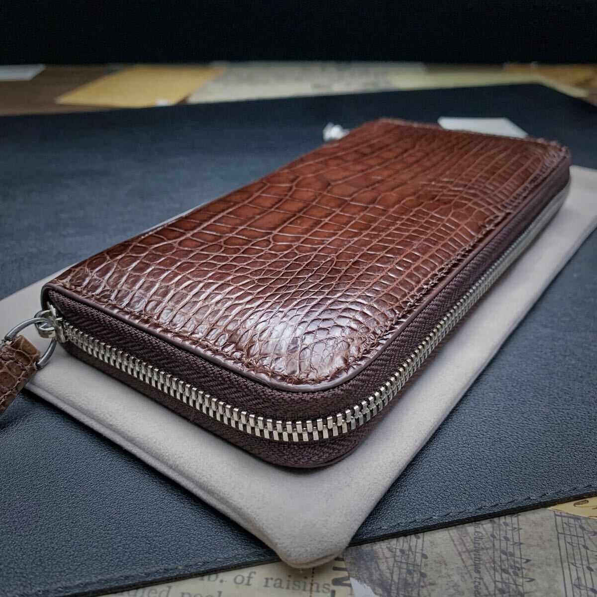 ・クロコダイルと呼ばれている品種のワニ革は人気が高く、独特の模様と凹凸が魅力で、高級ブランド品を中心にクロコダイルが多く使われています。今回はワニ革の代表格である『シャムクロコダイル』のセンターカット腹革のラウンドファスナー財布を出品します。