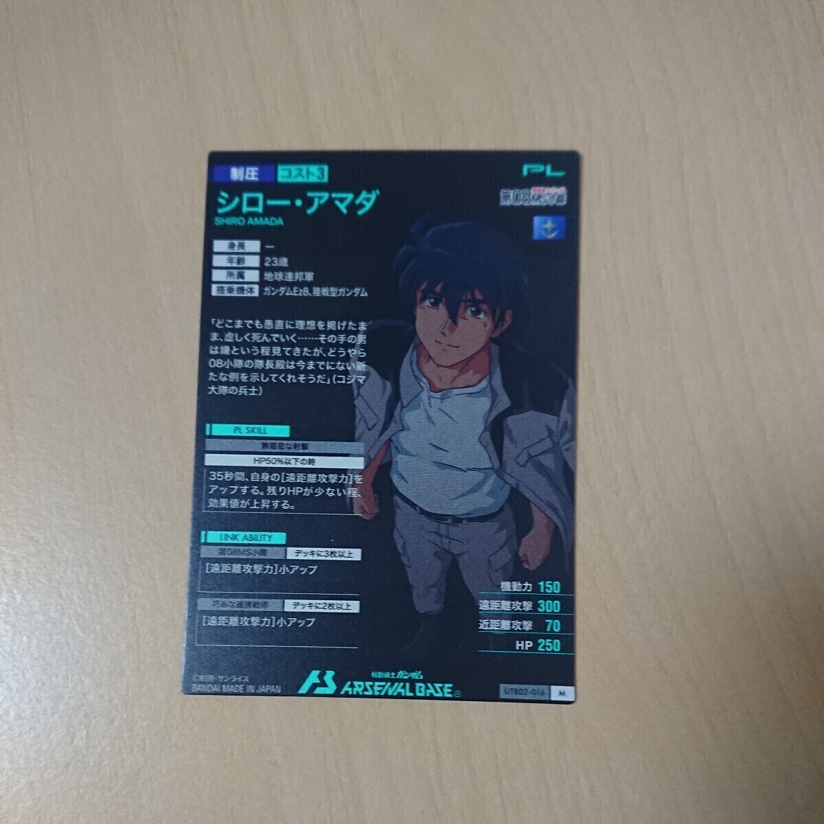 ガンダムアーセナルベース、Mレア、シロー・アマダの出品となります。未使用品です。排出後、スリーブに入れて保管していますが初期キズなど気になさる方はご遠慮ください。配送料金は梱包代込みで全国一律、120円とさせていただきます。他の出品との同梱は対応いたします。ノークレム、ノーリターンにてお願いいたします。