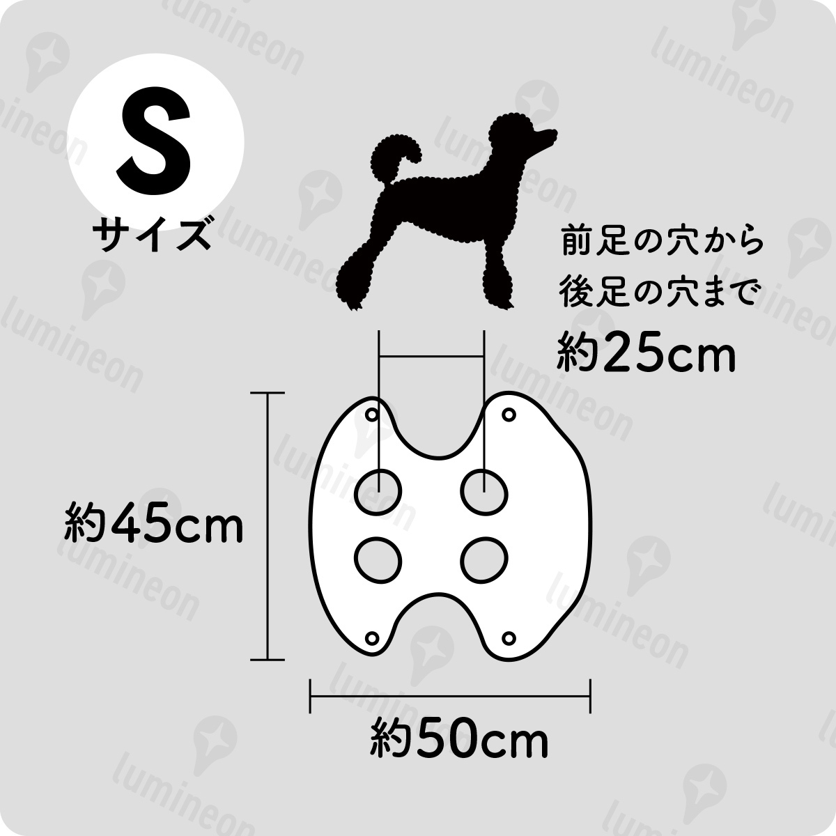 長さ:約50cm 高さ:約45cm 前足の穴と後ろ足の穴の距離:約25cm