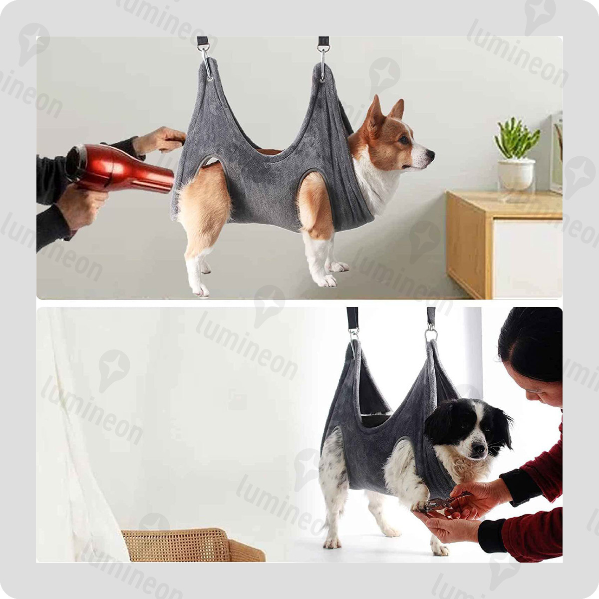 灰色,ペット,犬,ドッグ,カット,爪切り,点眼,目薬,耳掃除,犬用,固定,カット,グルーミング,小型犬用,ブラッシング,固定,吊り上げ,暴れ防止,ハーネス,イヌ,ネコ,g001c