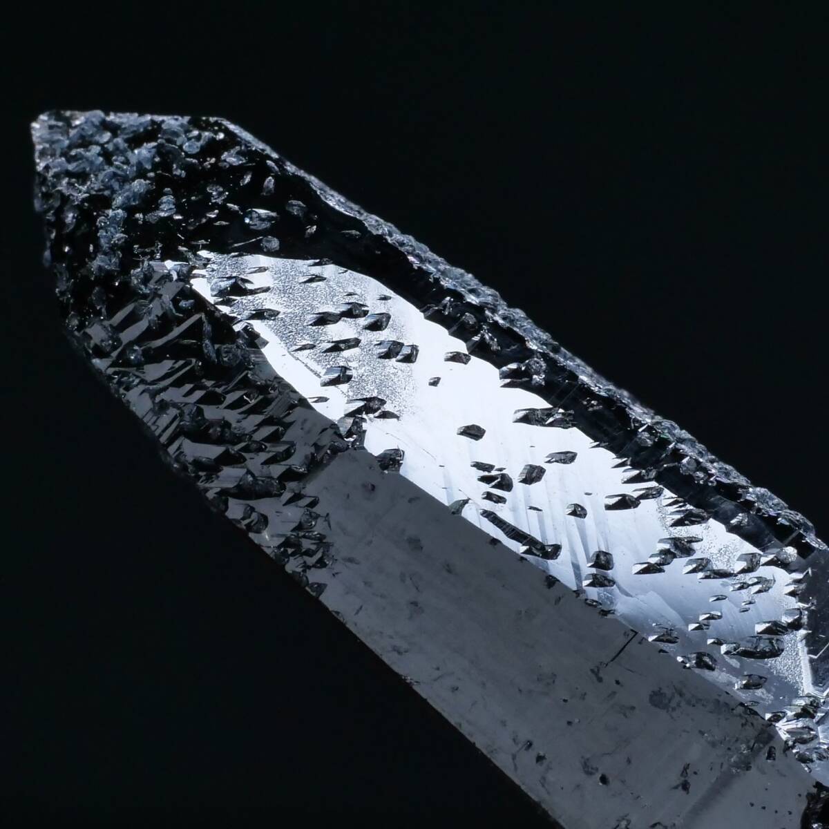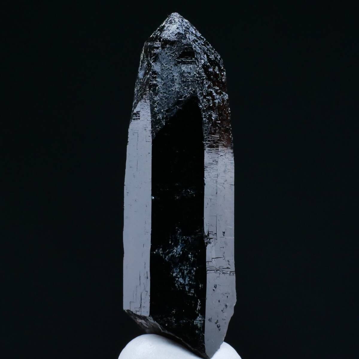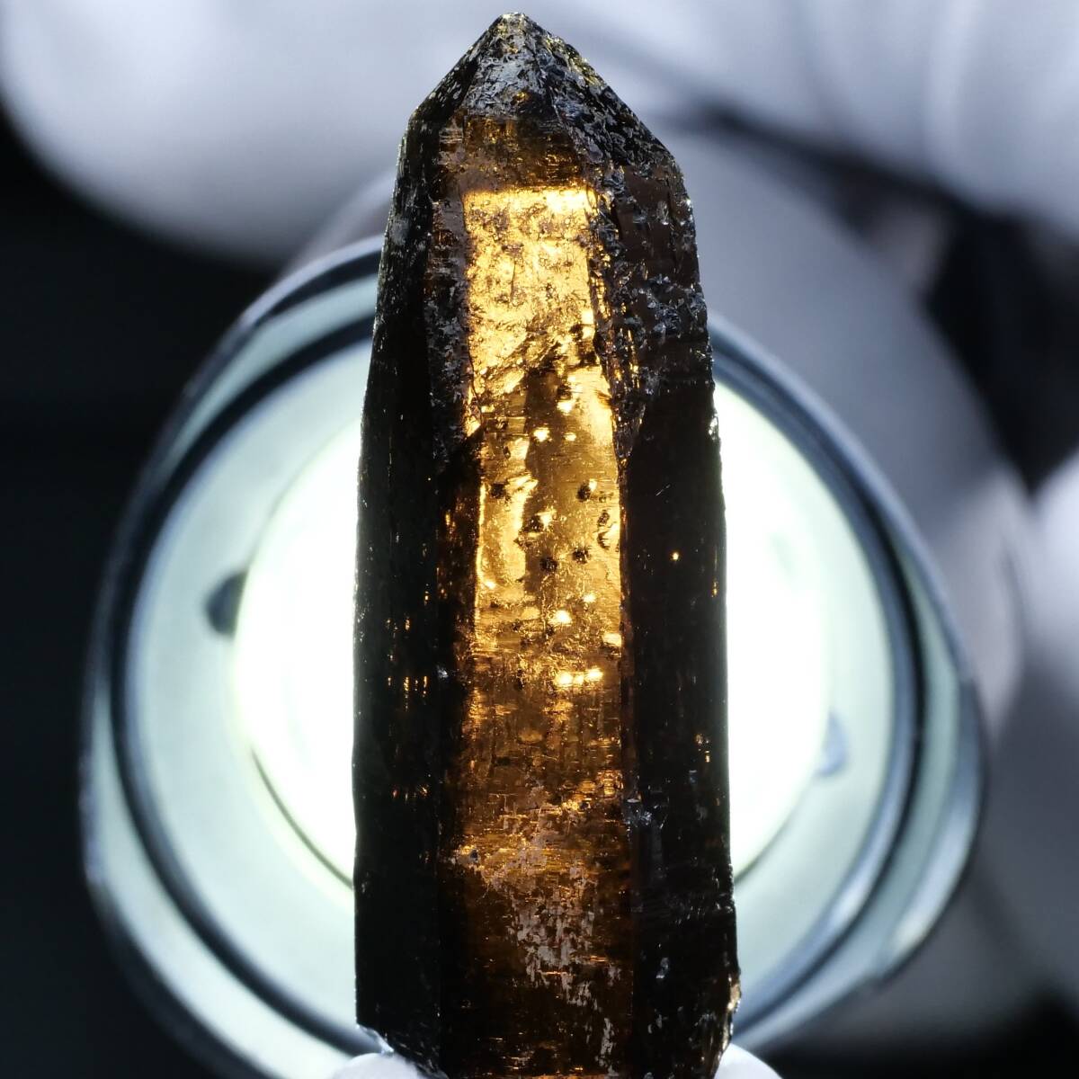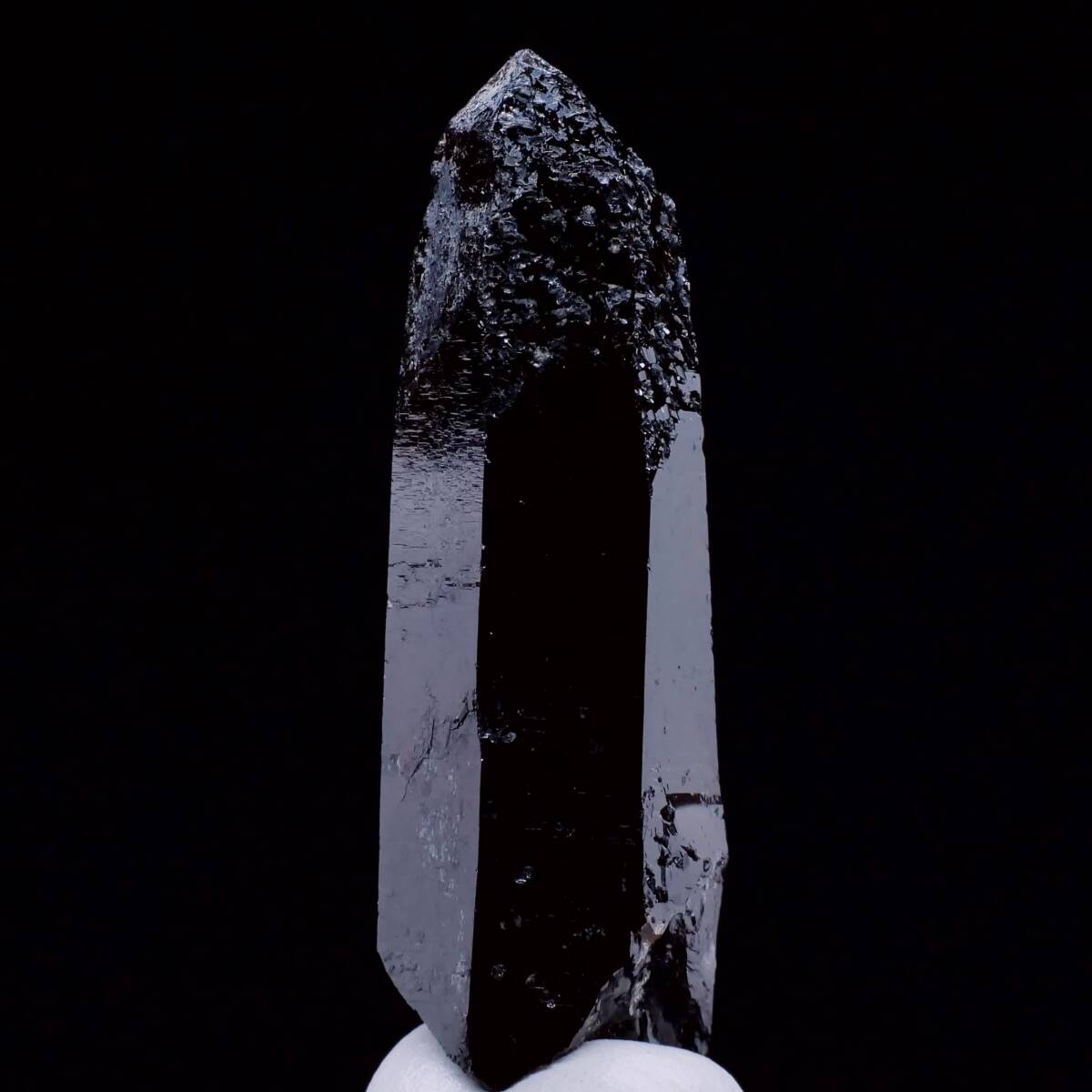 ※全体に真っ黒で一見すると黒水晶(モリオン)に見えますが、光にかざすと透き通るので煙水晶(スモーキークォーツ)となります。