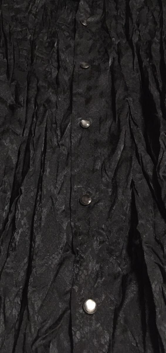 希少な最高級漆黒パイソン柄ジャガード織りクラッシュ皺加工のタイトシルエットシャツデザインが