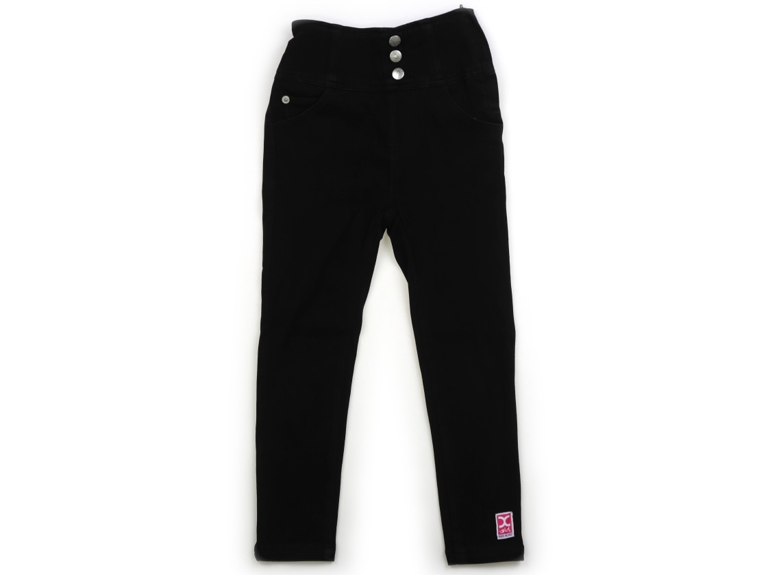 コットン配合のストレッチ生地、サイズ調整ゴムが付いています。左膝に引っ掛け傷、お尻やウエストに白っぽくスレ感が見受けられます。
