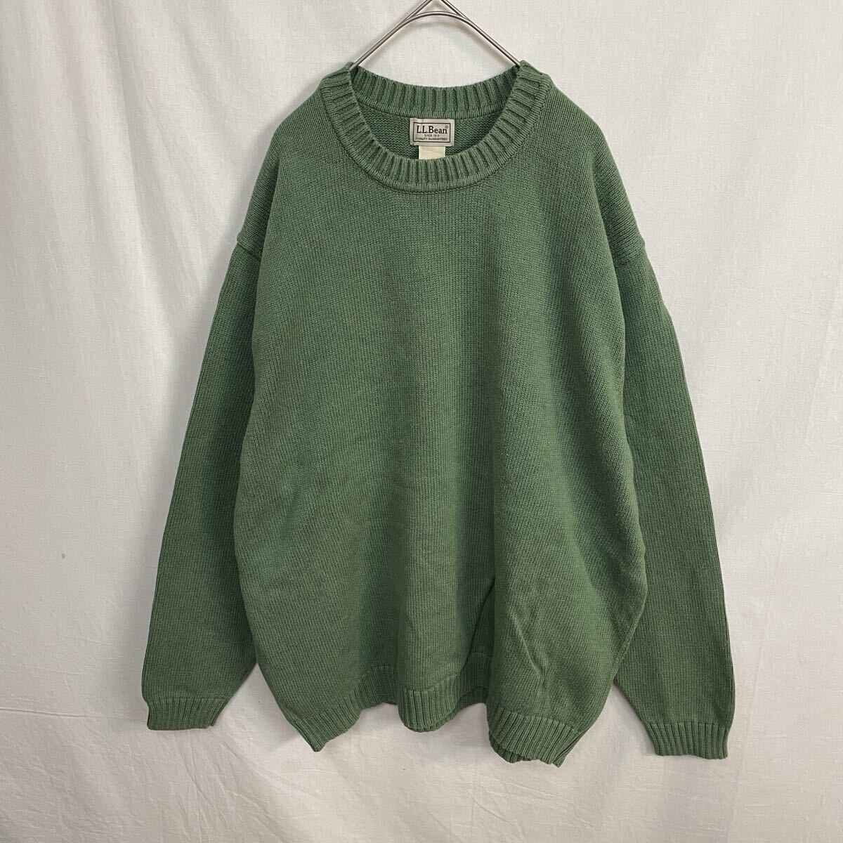 L.L.Bean コットンニットセーター 古着 XXL-Rサイズ グリーン
