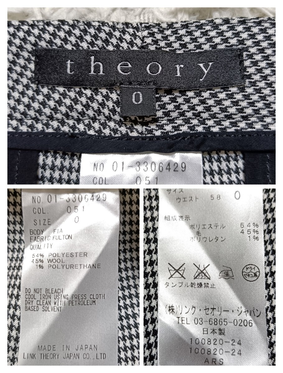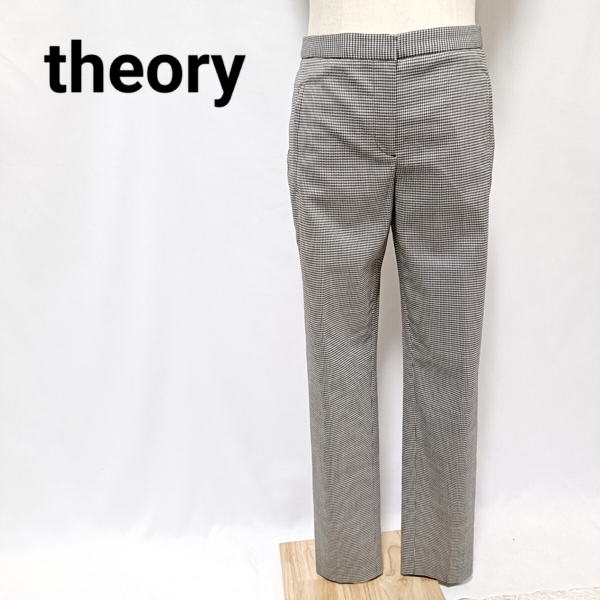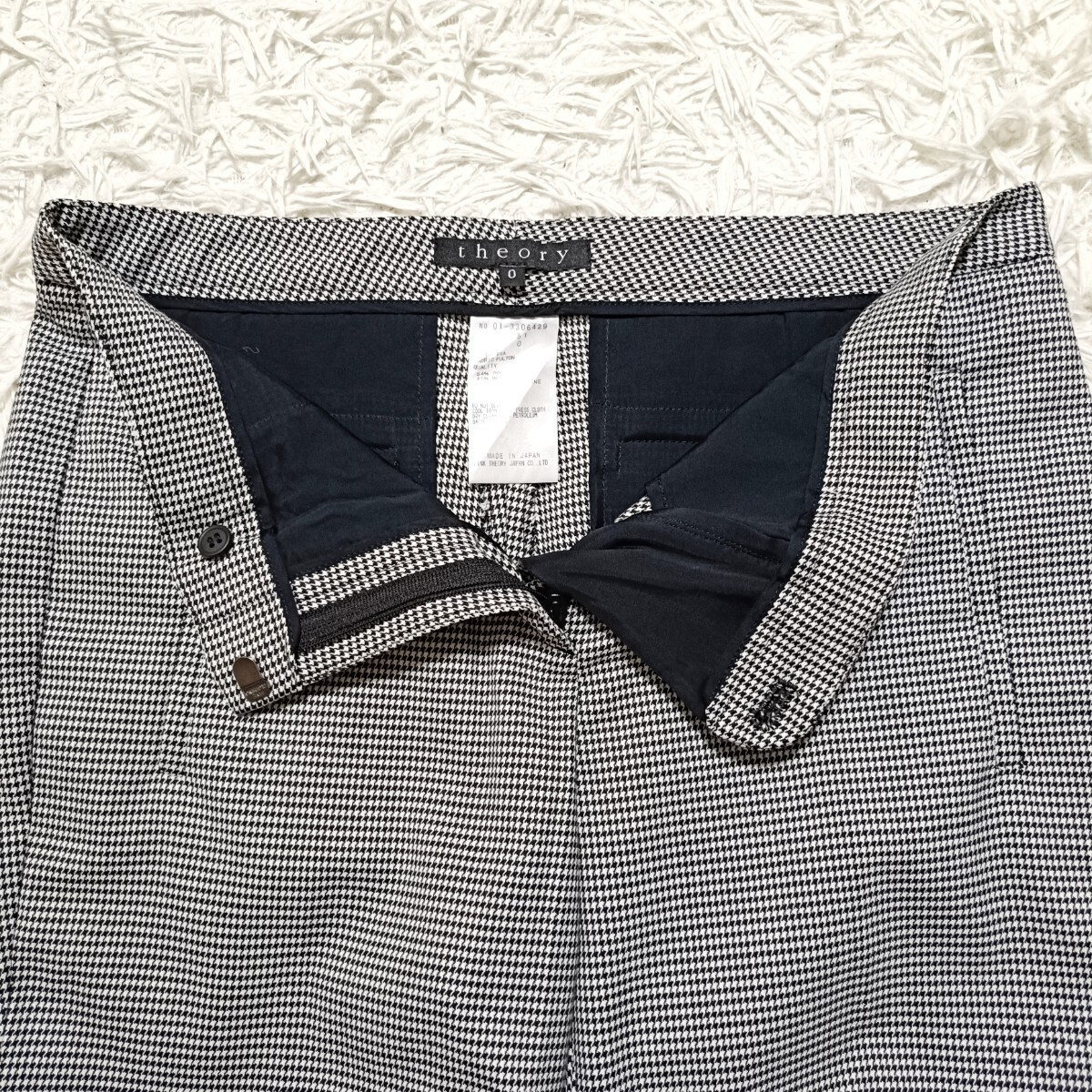 Theory セオリー 美品 スラックス パンツ 0 XS 千鳥格子 ハウンドトゥース ウール混 日本製 通勤 オフィス 美脚