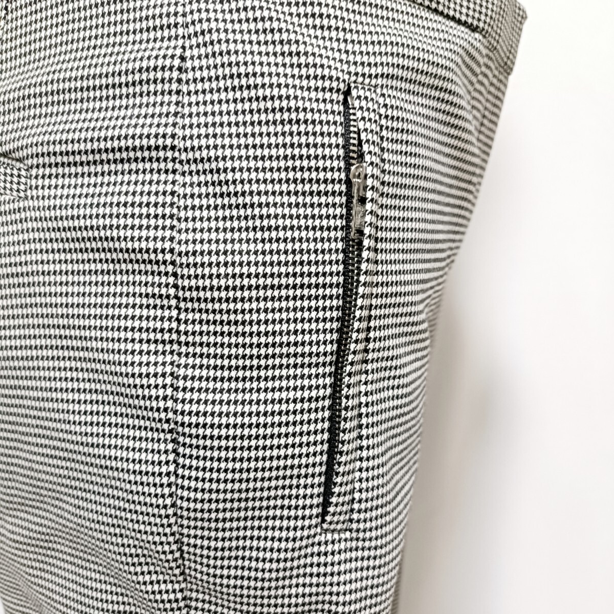シックなモノトーンの千鳥格子柄は、柄物ながら派手すぎず、オフィスや通勤に大変使いやすいデザイン。無地のトップスと合わせるだけで、洗練されたきれいめな印象になります。
