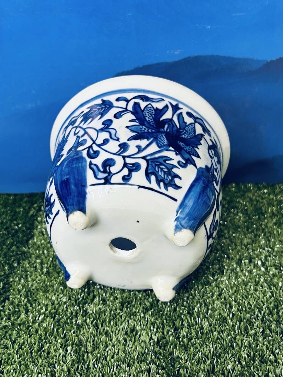 陶器 【植木鉢 大小2点セット 洋蓮】 染付 丸脚 盆栽用具 多肉植物 庭園 お庭 人気 園芸用品