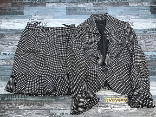 タグ付き新品!COPACA jewel amonier レディース ジャケット・フリルスカート 上下セットアップ 襟・袖フリル 11AR 黒白 です。