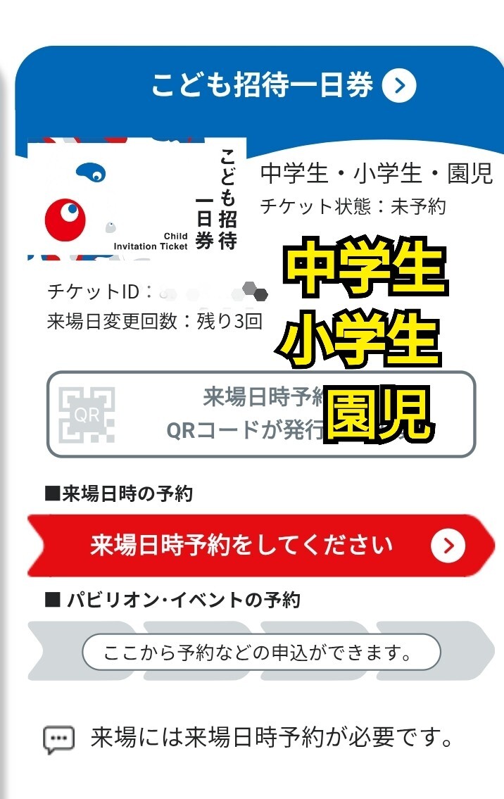 下記URLをご確認ください。 https://www.expo2025.or.jp/tickets-index/information/mytickets/