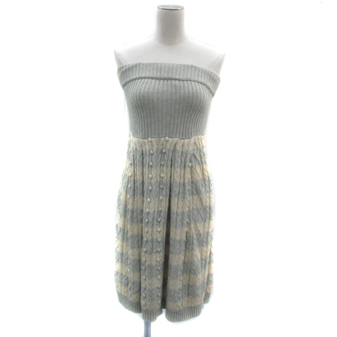 ジルスチュアート ベアトップニットワンピース チューブトップ ミニ丈 ボーダー柄 2 ライトグリーン アイボリー レディース