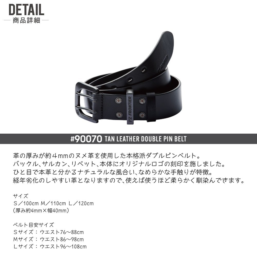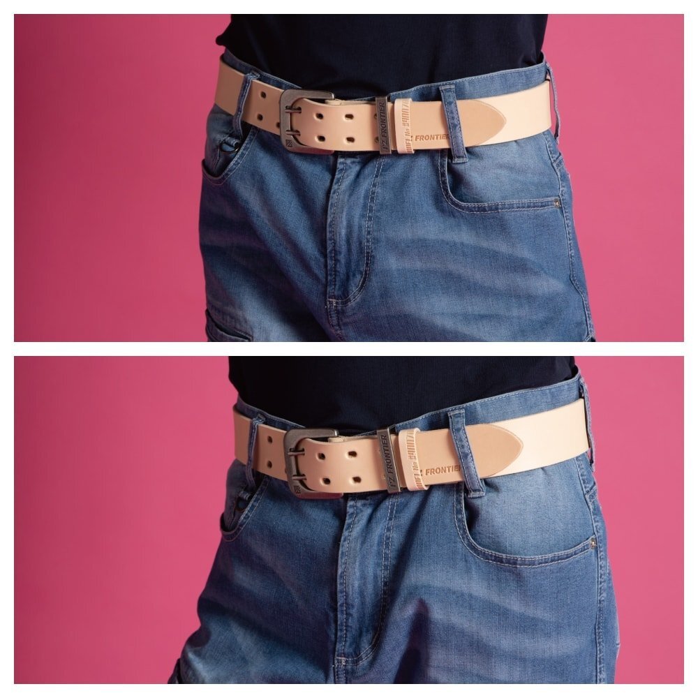 革の厚みが約4mmのヌメ革を使用した本格派ダブルピンベルト