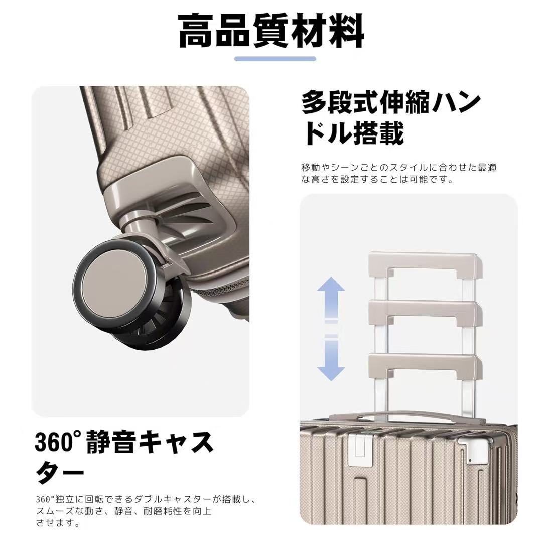 スーツケース XLサイズ 多機能 キャリーケース 大型 超軽量 キャリーバッグ 耐衝撃 USBポート付き カップホルダー付き 充電機能 荷物フック 隠しフック機能 静音 ダブルキャスター 360度回転 修学 泊まる 旅行 出張