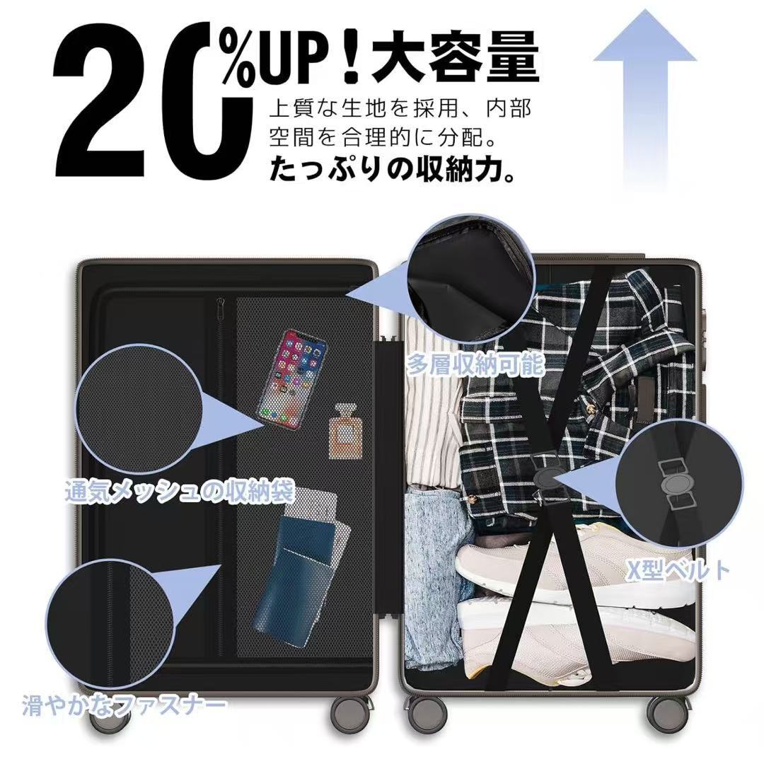 スーツケース XLサイズ 多機能 キャリーケース 大型 超軽量 キャリーバッグ 耐衝撃 USBポート付き カップホルダー付き 充電機能 荷物フック