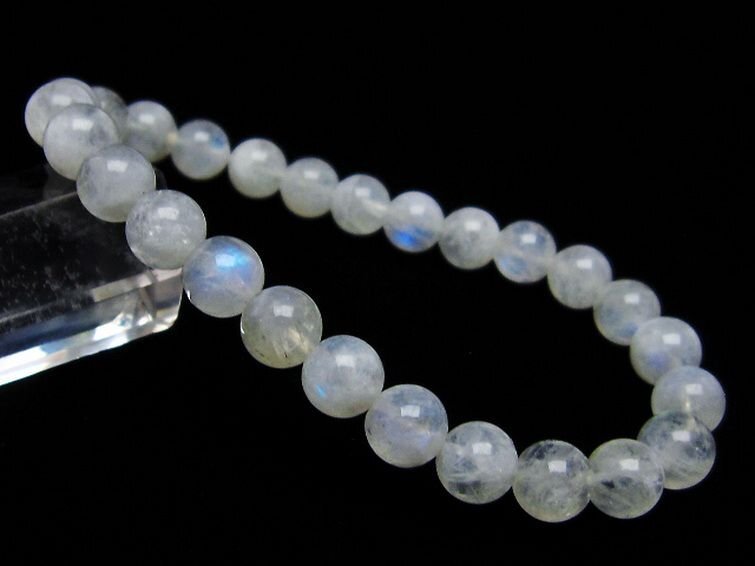 ■商品名: ムーンストーンブレスレット ■商品ID: T18-9101 ■商品重量:約 13.6g ■商品サイズ:内周約:158mm(±5mm)粒直径約:7mm(±0.5mm) 【ムーンストーン(月長石)】 ムーンストーンは長石の一種で正長石(オーソクレース)を主としアルバイト(曹長石)成分を含んでいます。そのために美しいシラー効果が確認できます。乳白色や半透明のものが一般的ですが、他にも青やオレンジ等の様々な色が確認されています。柔らかい月の明かりのような光沢を持ち、真珠を思わせるような上品な石です。 ムーンストーンは古来より月の光が宿る石とされてきました。灼熱の国インドでは月は安らぎの象徴とし崇められてきましたが、その月の力を宿した聖石としてムーンストーンを身に着けていたそうです。 月の光のような柔らかな波動を持つムーンストーンは、心配や緊張を解きほぐし、心や情緒を安定させる効果があるとされていることからうつ病やノイローゼを防ぐとされています。また感受性や危機を察する直観力が高まるとされ、厄除けになることから旅人の守護石ともされています。 自分の中にある潜在能力を高め、ひらめきをもたらしてくれるとされていますのでクリエイティブな職業に携わっている方にお勧めしたい石です。 恋愛面においては「恋人たちの石」と呼ばれ、互いの絆や愛情を深めるために恋人への贈り物ともされてきました。またお目当ての異性に贈ると、恋が芽生えたり、友情が愛情に変わるとも言われています。一度終わった関係を復活させる等、別れた恋人同士を再び結びつけるという伝承もあります。遠距離恋愛の守護石としても有名です。変わらない愛情と優しい情熱を盛り上げてくれるそうですので、夫婦で持つのもお勧めです。 ■ワンポイント情報 月は女性性を象徴し、女性の身体の調子も月の満ち欠けに関わっているという説は有名です。ムーンストーンは女性特有の身体の不調や更年期等のイライラを鎮めてくれるとされています。また生理痛、不妊、出産の痛みを改善し、安産のお守りともされています。 暗い夜道を照らす月の光のように、闇の悪霊を祓い、危険を察知する感が良くなるとされていますので、夜道を歩いて帰宅する女性はお守りとして一つ持つと良いかもしれません。 |