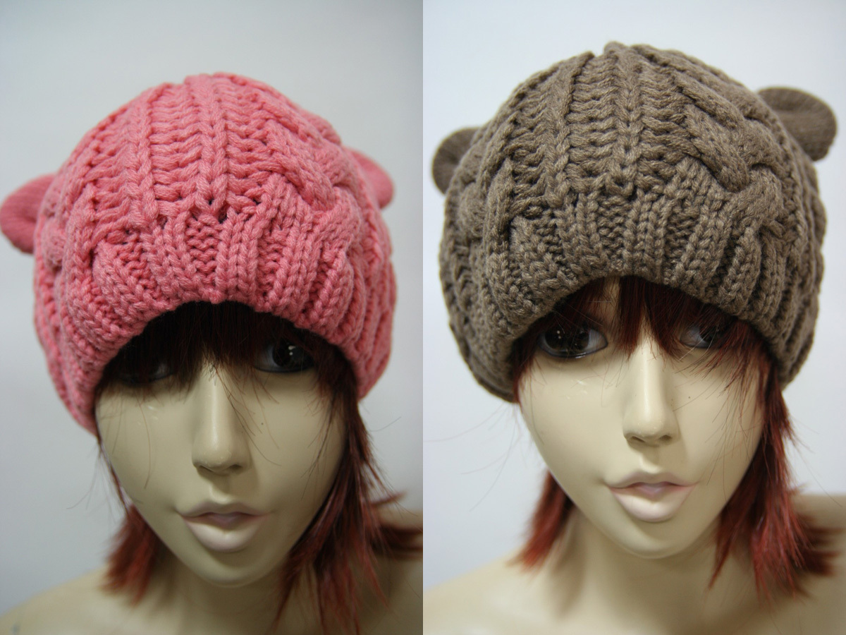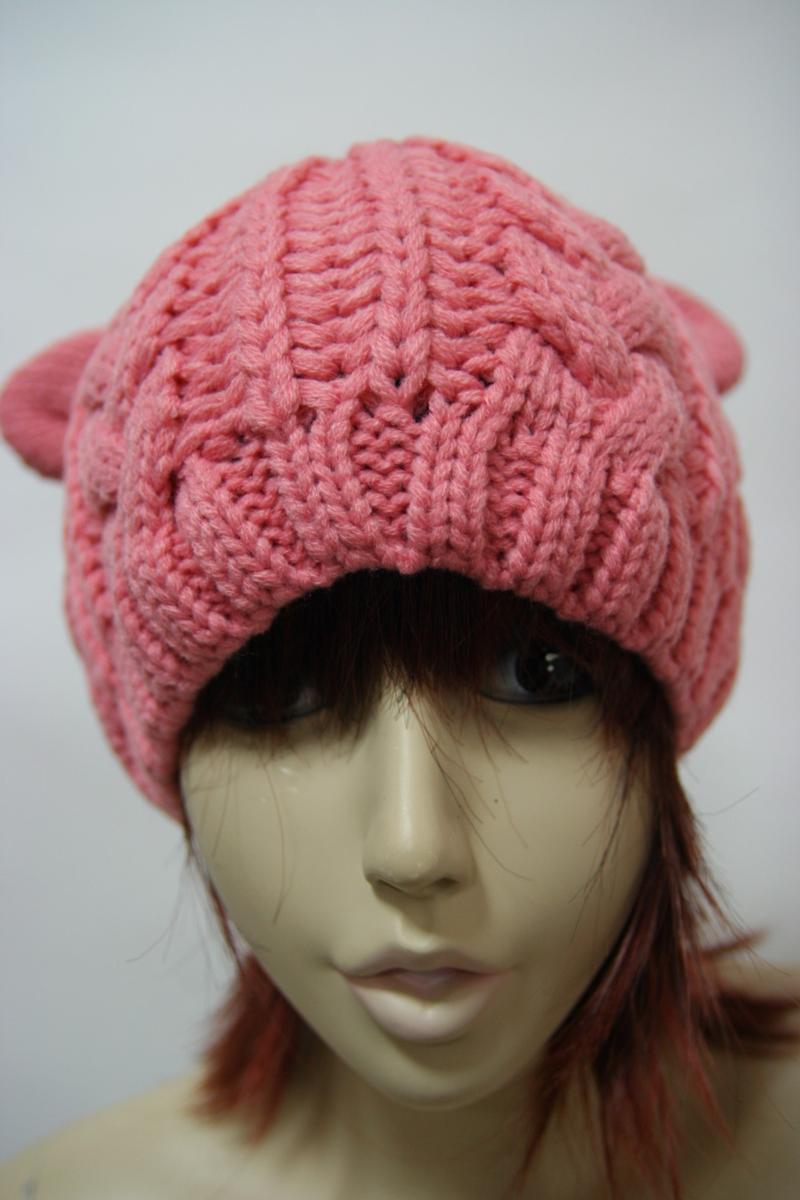 ・手編み風のデザインにネコ耳が付いた可愛い、ふんわりあったかニット帽です。