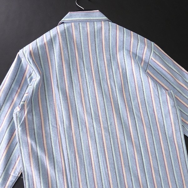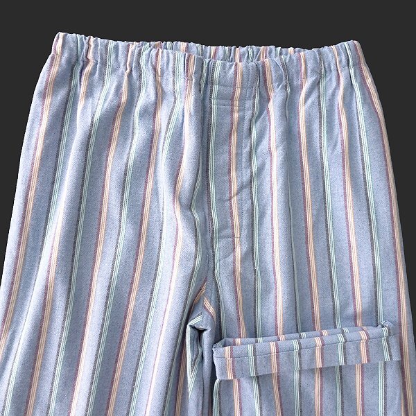 日本製 新品 未使用 紙タグあり Mサイズ チェスト88~96 身長165~175 ウエスト76~84 ※商品に記載されたサイズ・寸法です※ 【トップス】 肩幅46cm 身幅56cm 袖丈51cm 着丈72cm 【パンツ】 ウエスト76~84cm(内回り1周) 股上30.5cm 股下61cm 裾幅21cm 腿幅28cm(股下10cm部分) 綿100% ブルー系 |