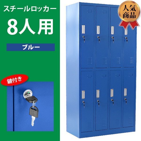 商品名 | 送料無料 ロッカー おしゃれ スチールロッカー 8人用 ブルー 鍵付き スペアキー付 4列2段 スチール製 収納 オフィス 事務所 会社 業務用 オフィスロッカー スチールキャビネット オフィス用品 スリム かぎ付き 更衣ロッカー 八人用 8枚扉 シリンダー錠 青 sy208d185 |