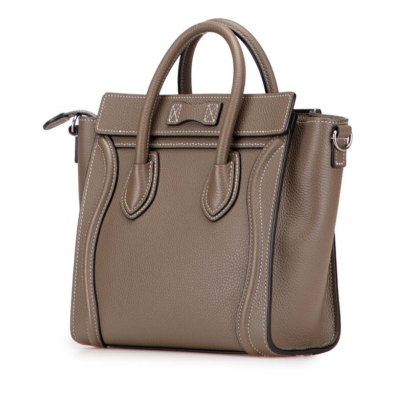 セリーヌ ラゲージ ナノショッパー ハンドバッグ ショルダーバッグ 2WAY グレージュ レザー レディース CELINE 【中古】