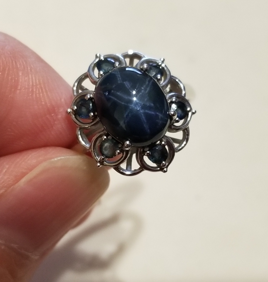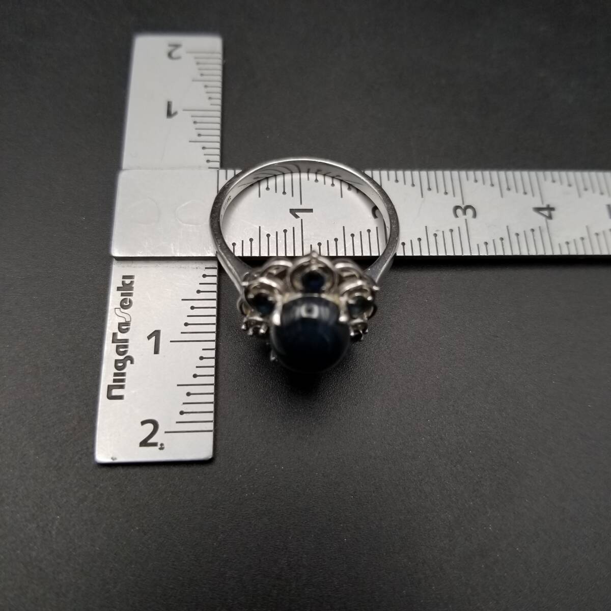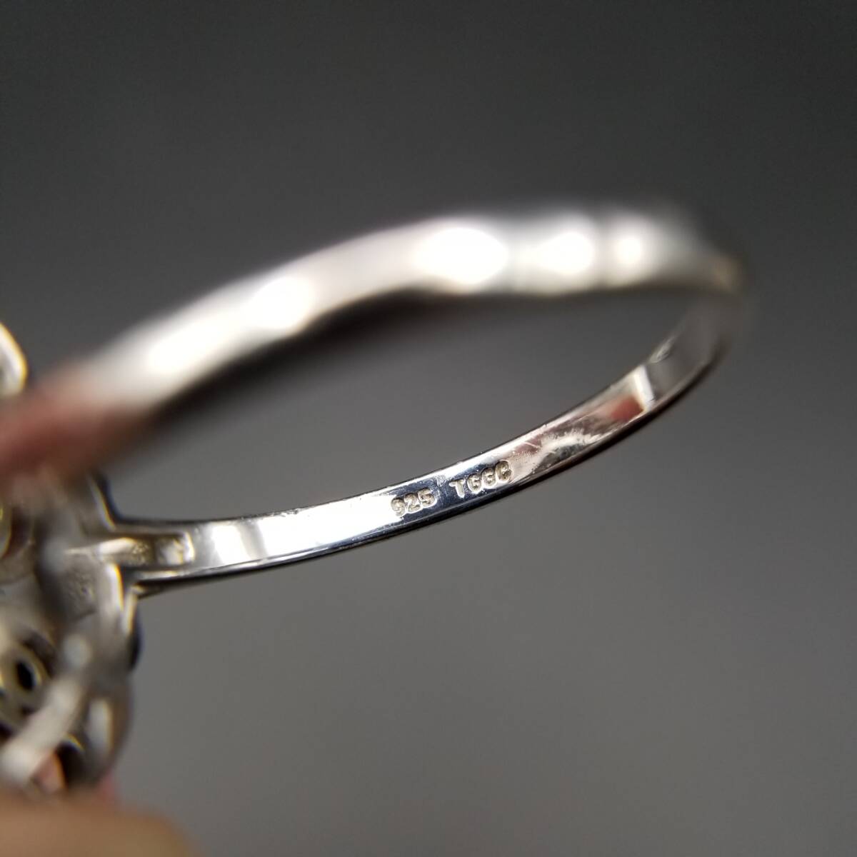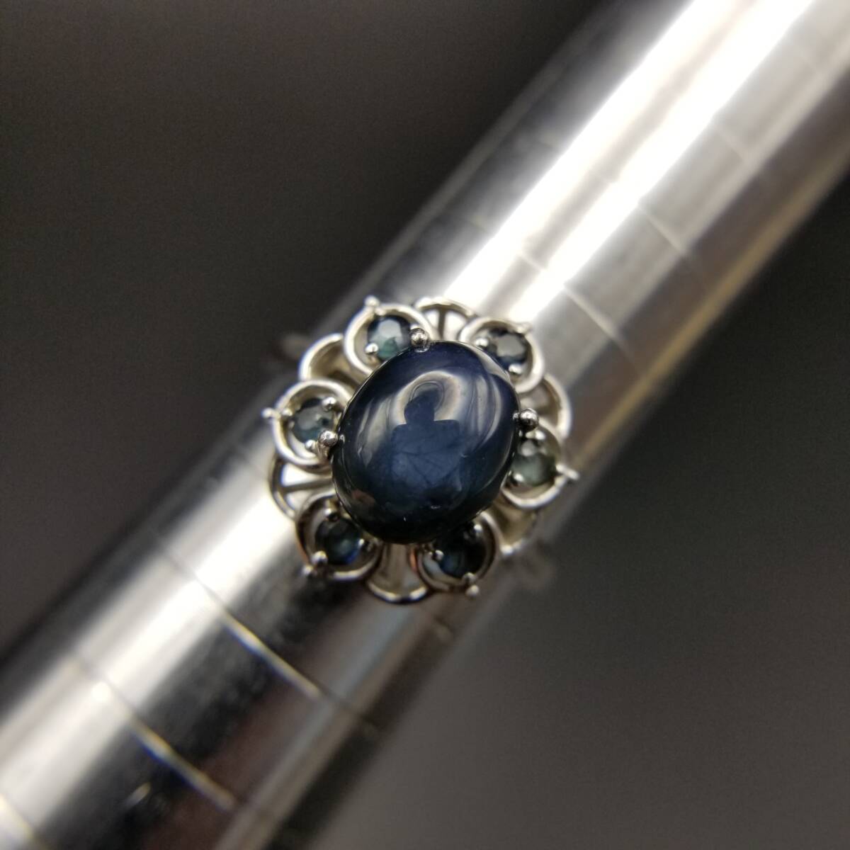 TGGC ブラックスター カボション お花 925 シルバー フラワー リング 指輪 銀 ブルーストーン装飾 大きいサイズ R16-S
