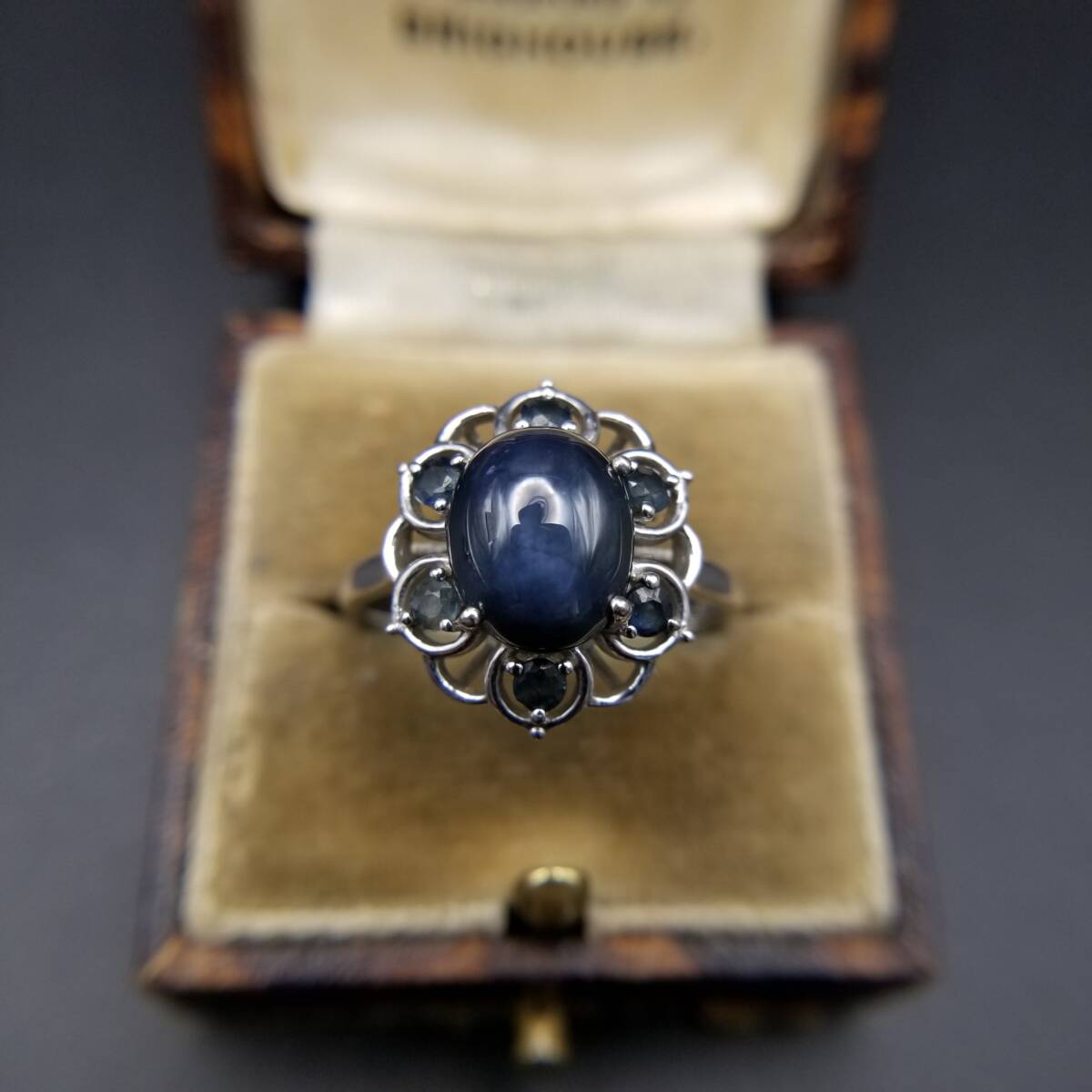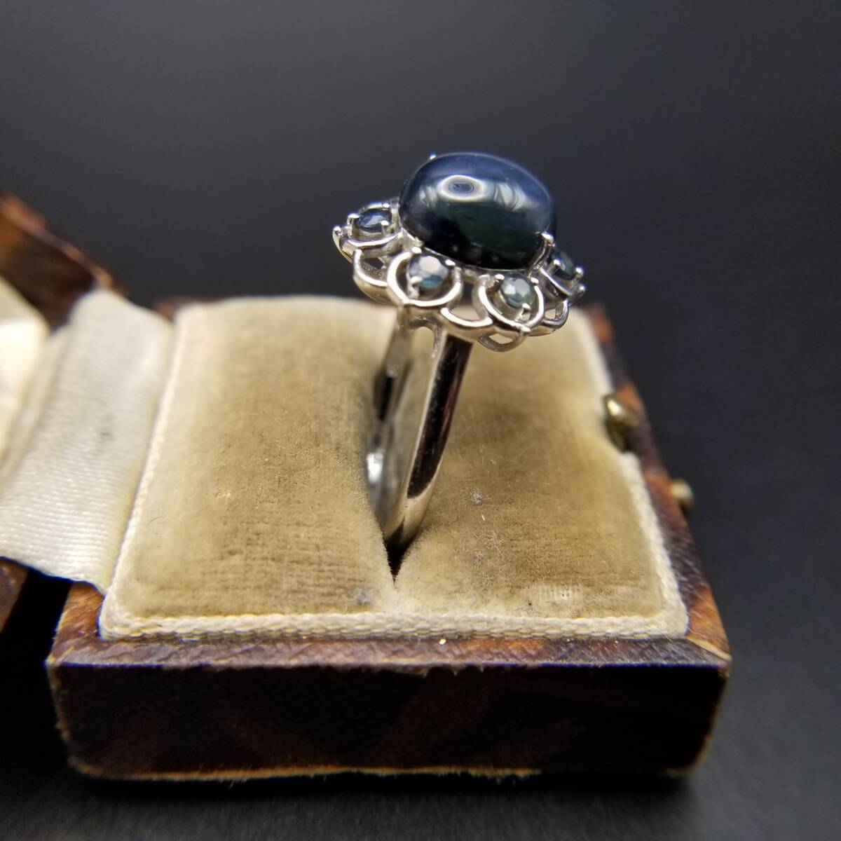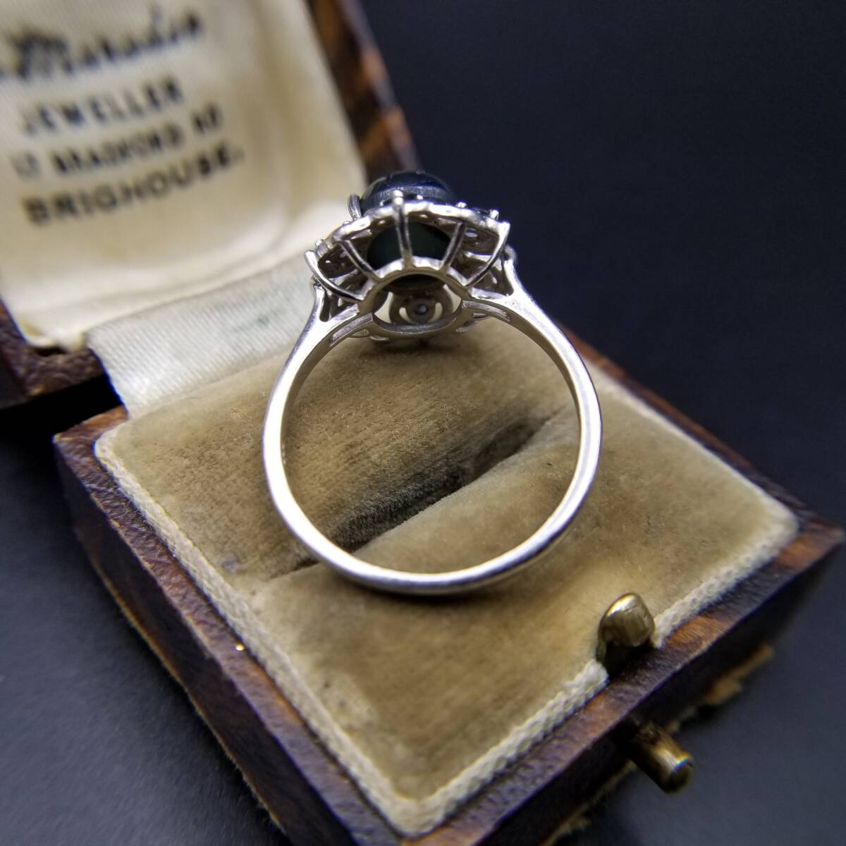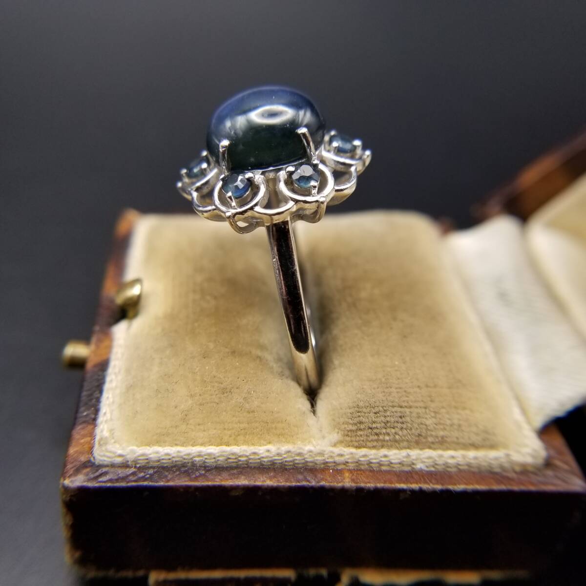 TGGC ブラックスター カボション お花 925 シルバー フラワー リング 指輪 銀 ブルーストーン装飾 大きいサイズ R16-S