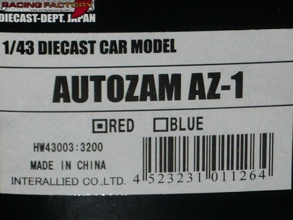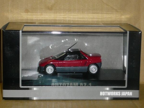 1/43 HOT WORKS AUTOZAM AZ-1 赤です。箱が傷んでいますので、ご了承の上入札ください。商品の状況は写真でご判断の上、ノークレーム・ノーリターンでお願いします。保証はできませんが、定形外郵便での発送も可能です。
