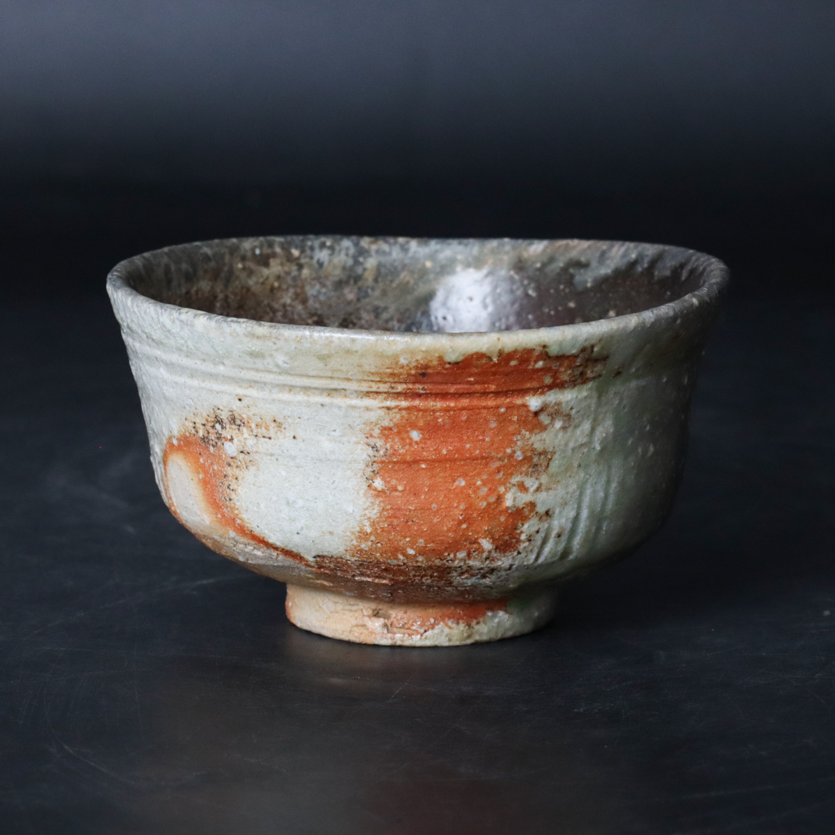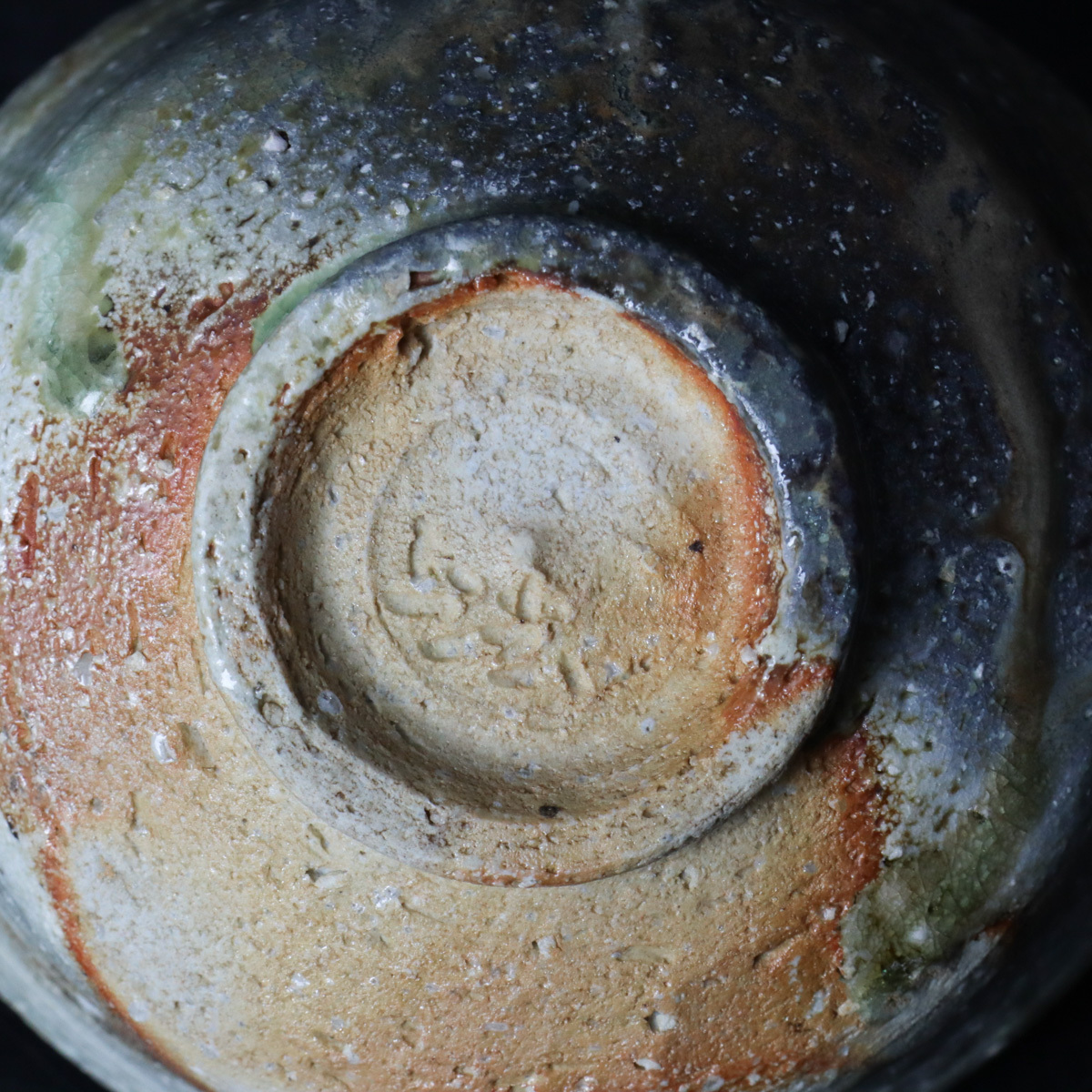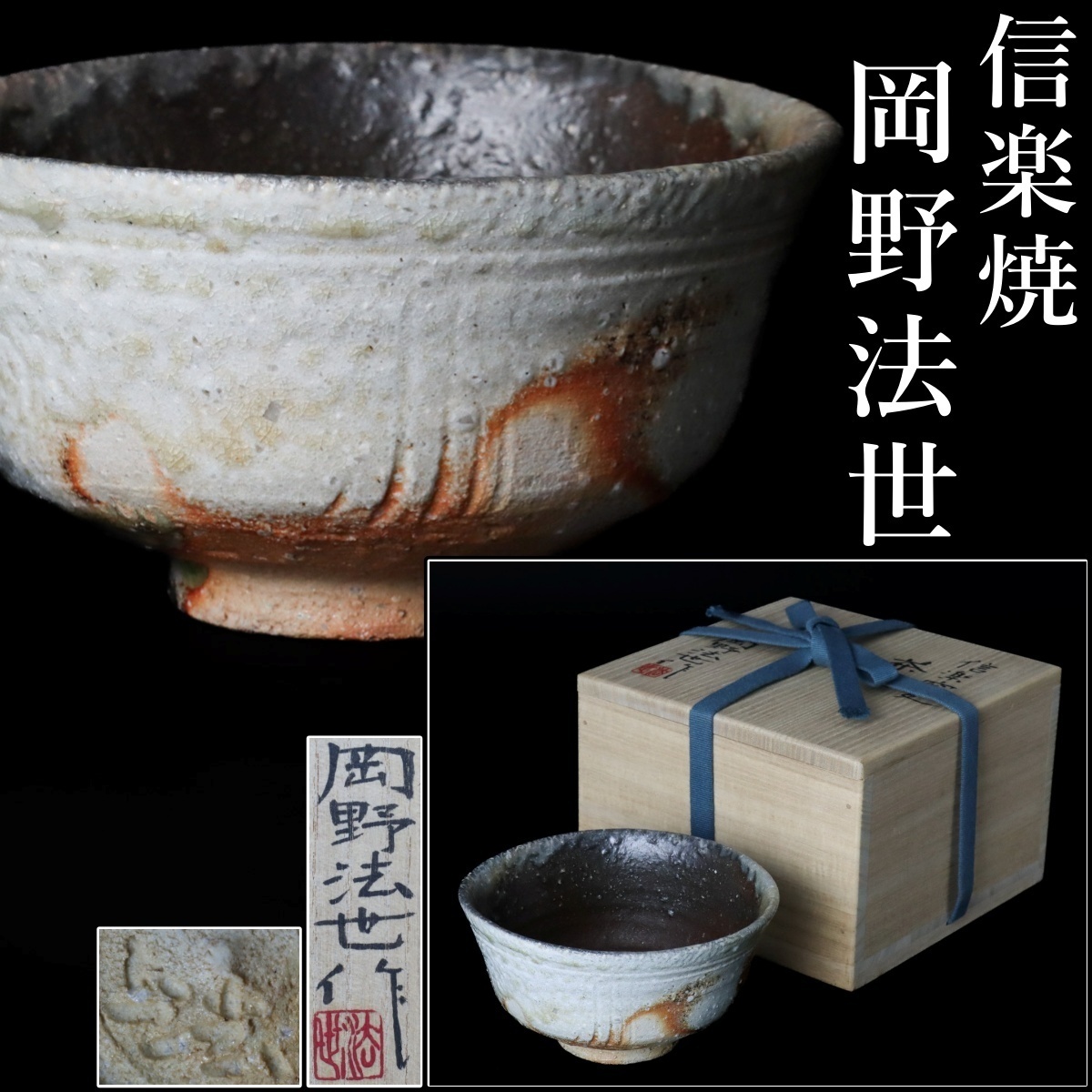 【宙】信楽焼 岡野法世作 信楽窯変茶碗 高7cm 幅13.5cm 共箱 陶印 栞付 灰被りと火色が織りなす景色趣 茶道具 現代陶芸作家 [D]9J12.m.B