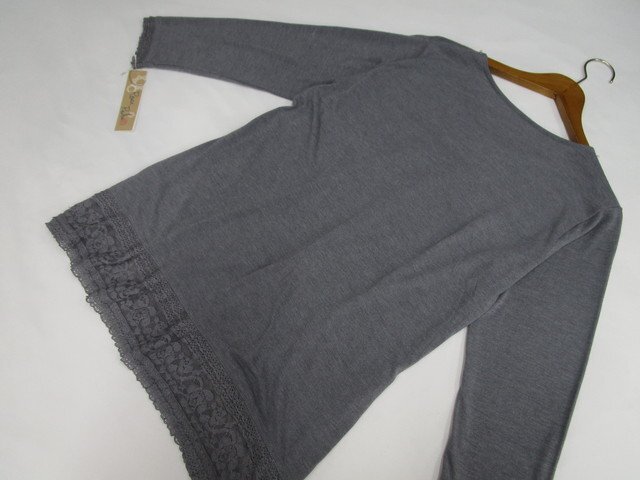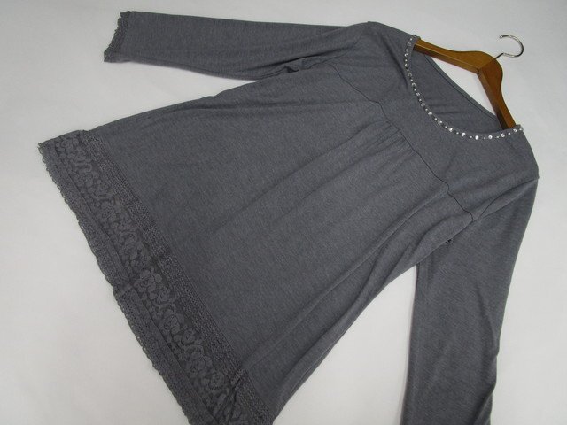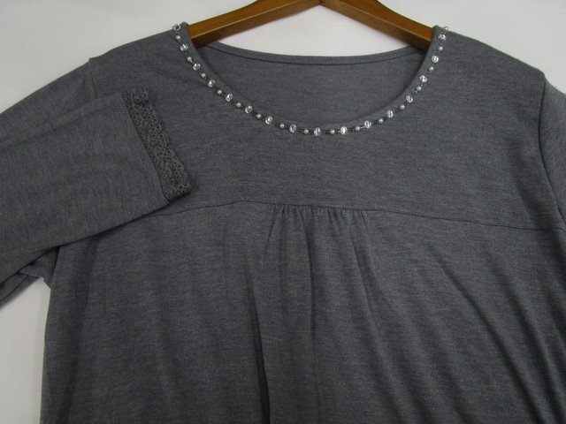 七分袖 ラウンドネック カットソー 4L グレー杢