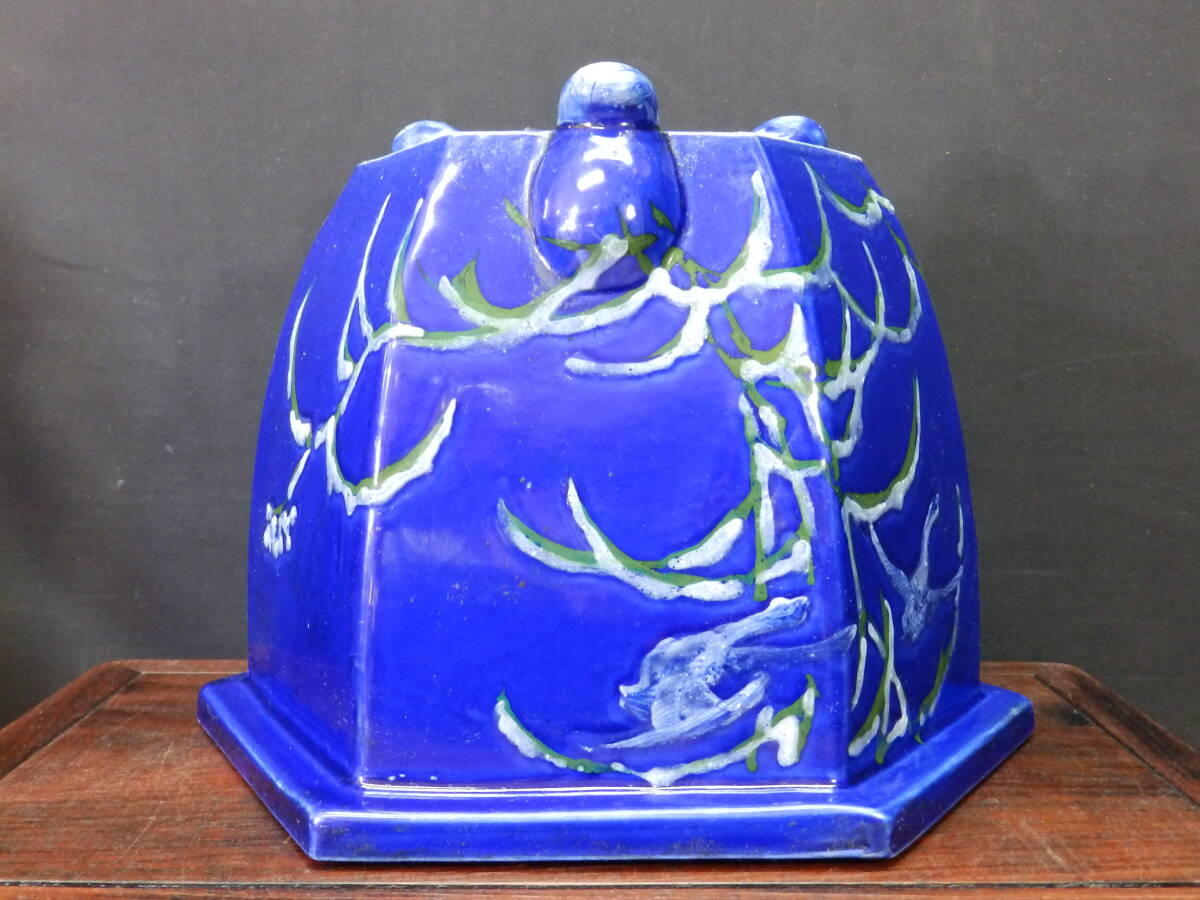 和鉢  【瀬戸・尾張焼】  瑠璃釉浮絵模様入外縁六角鉢のご紹介です。