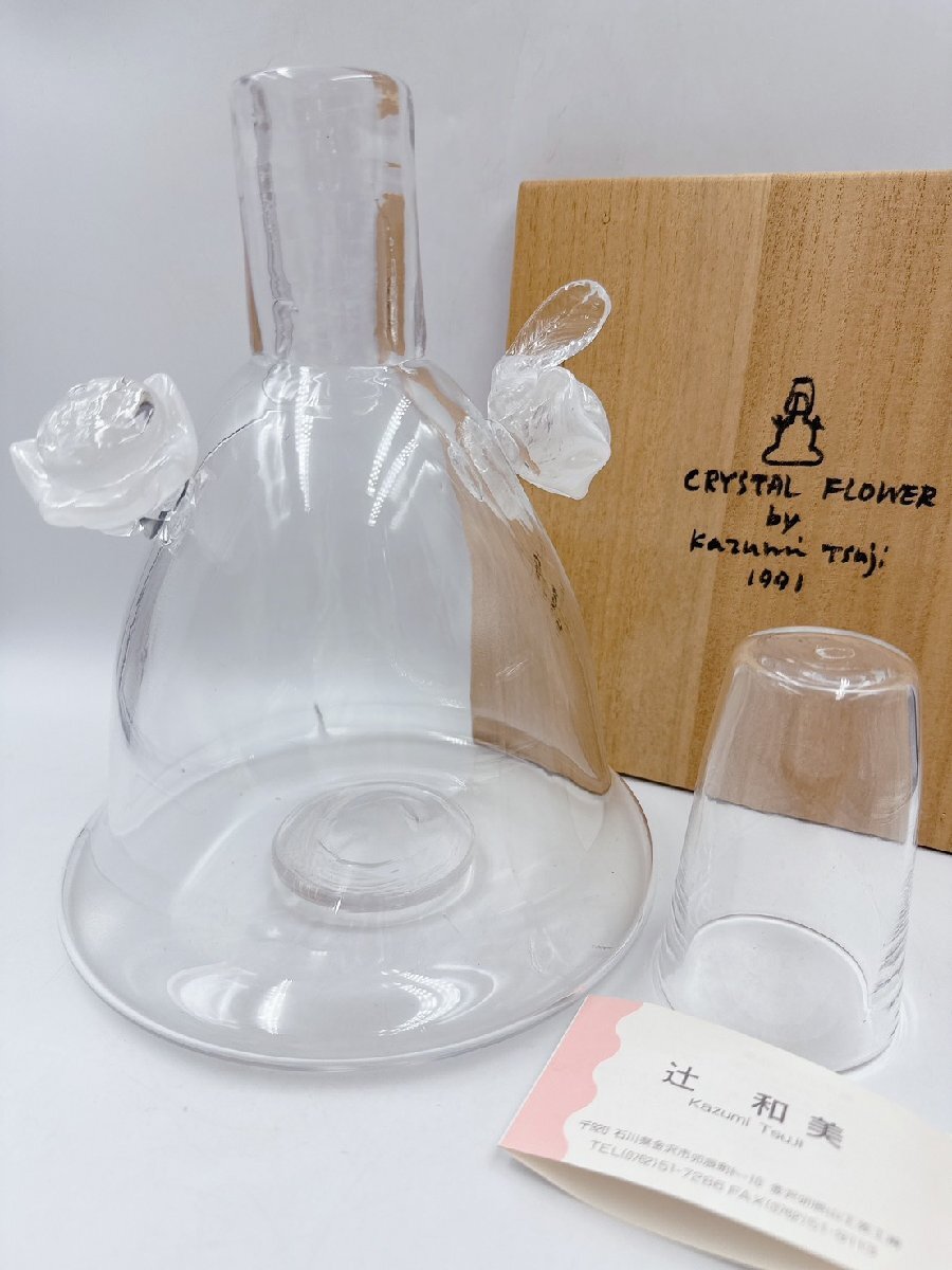1円【未使用】辻 和美 Kazumi Tsuji ガラス作家 ディキャンタ 高さ23㎝ 水指 クリスタル グラス 箱付き 美術品 現状品【KO002】