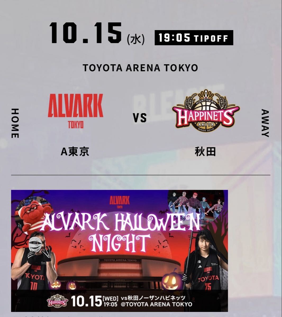 アルバルク東京vs秋田ノーザンハピネッツ 10/15(水)