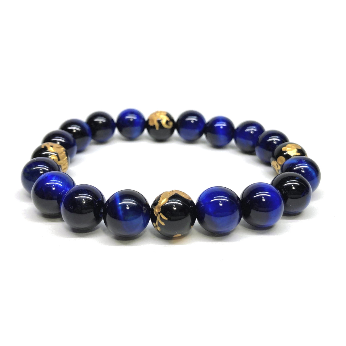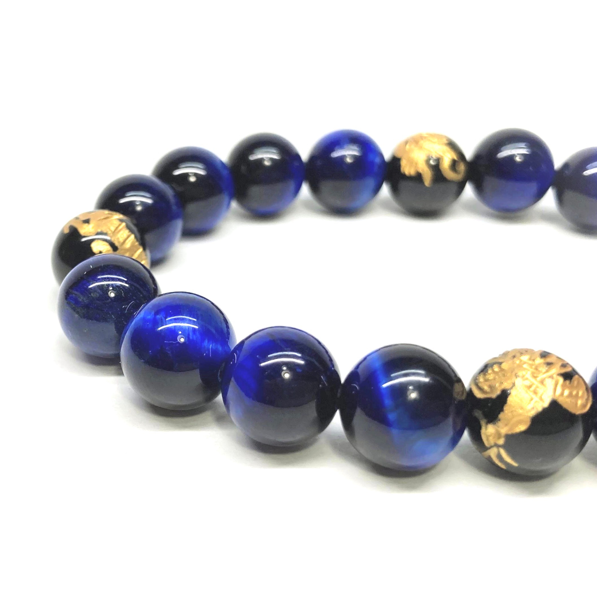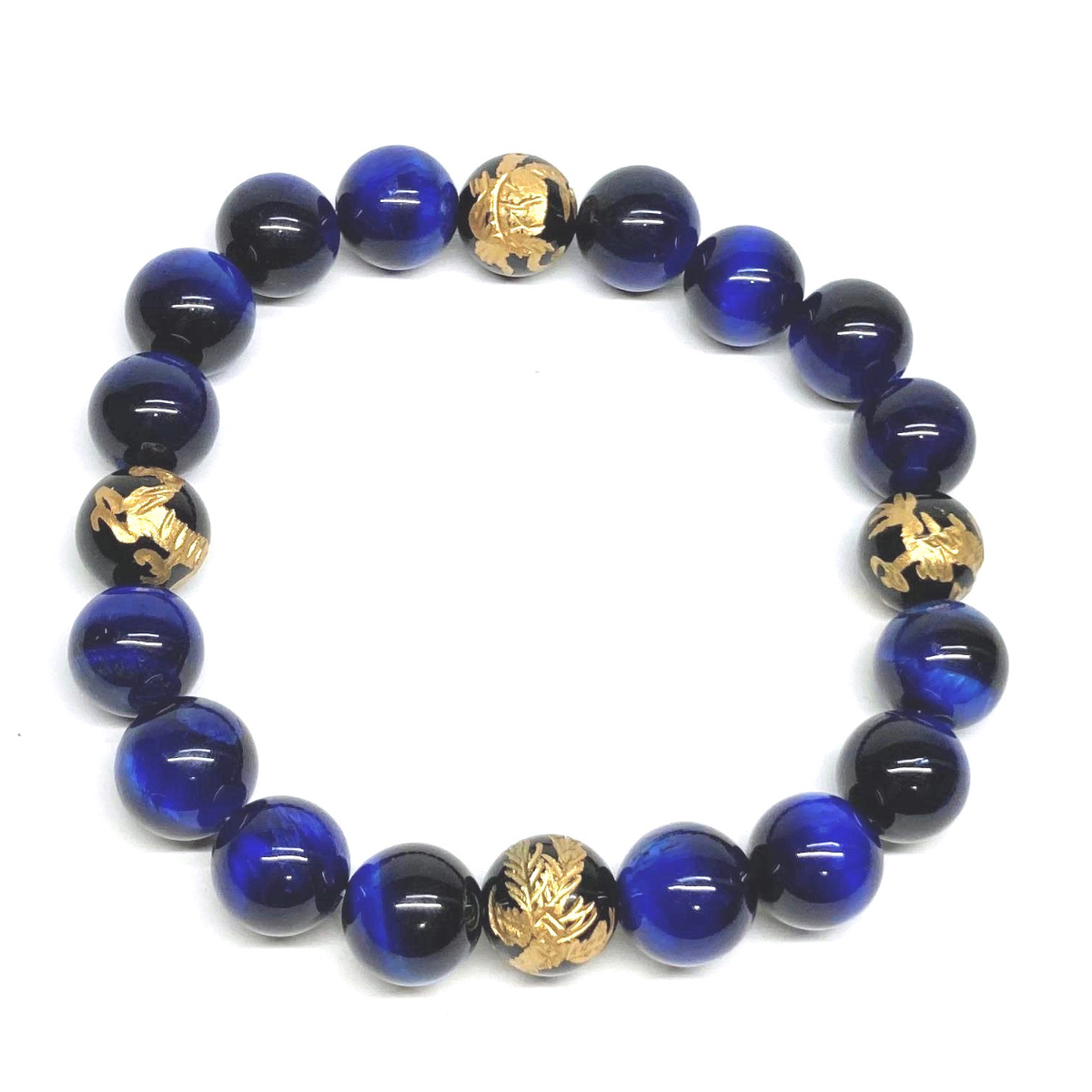 10mm 四神獣金彫オニキス×ブルータイガーアイ パワーストーン ブレスレット天然石 運気上昇 開運 金運 恋愛運 青龍 白虎 玄武 朱雀 ☆