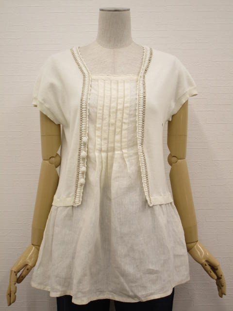 フレンチスリーブ 半袖 スクエアネック フェイクレイヤードニットチュニック 38 アイボリー 【メール便可】