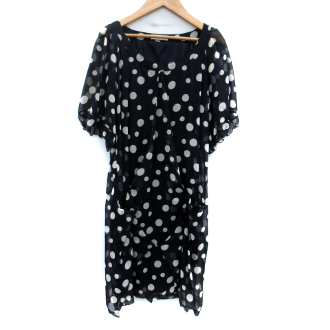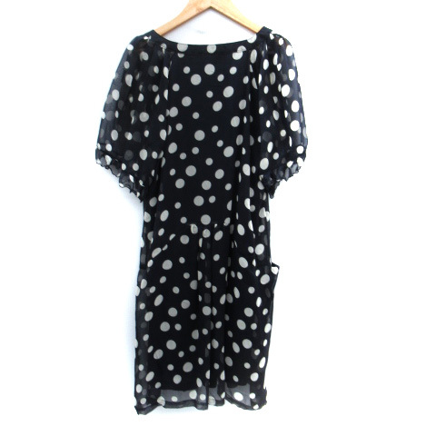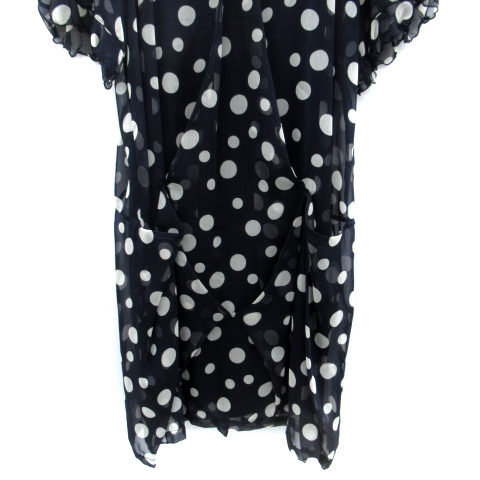 バーニーズニューヨーク BARNEYS NEW YORK ワンピース ひざ丈 半袖 ドット柄 シースルー 紺 ネイビー オフホワイト /SM14 レディース