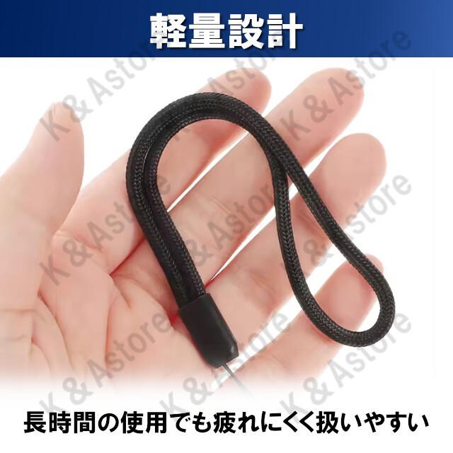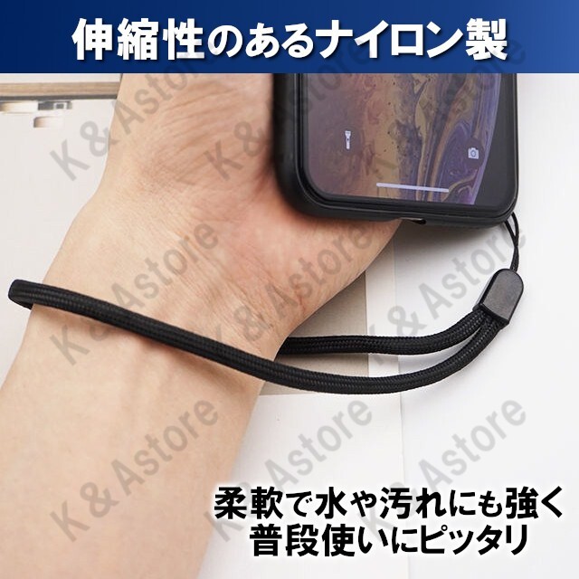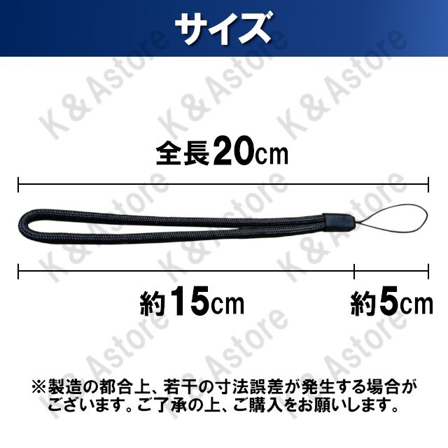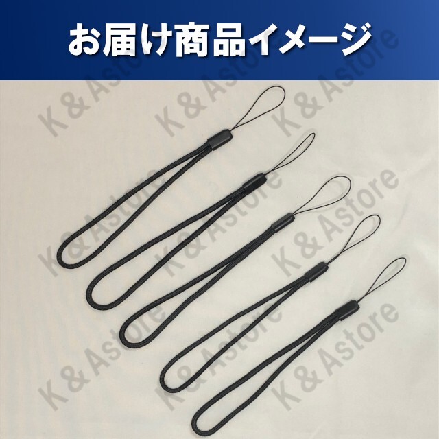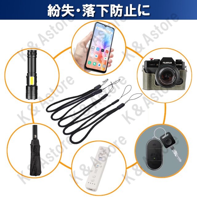 ハンドストラップ リストストラップ スマホ 携帯 懐中電灯 キーホルダー カメラ ホイッスル キーケース パスケース 黒 ブラック 20cm 5本