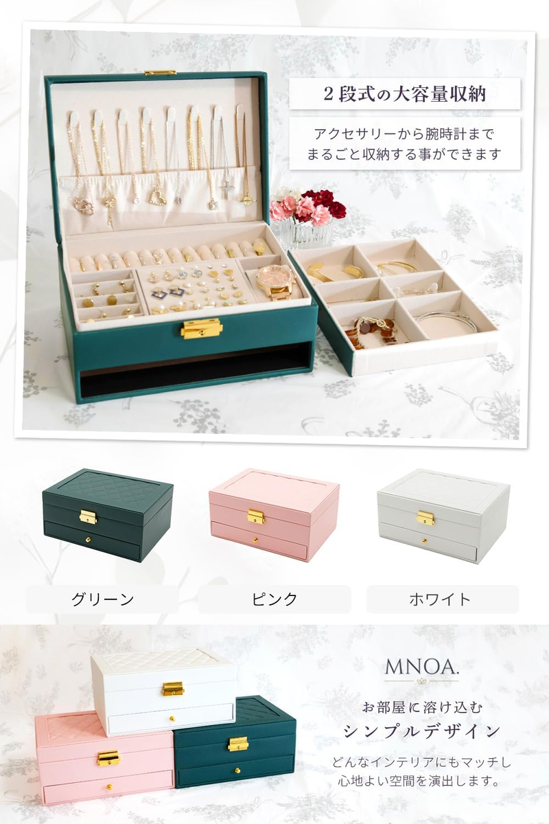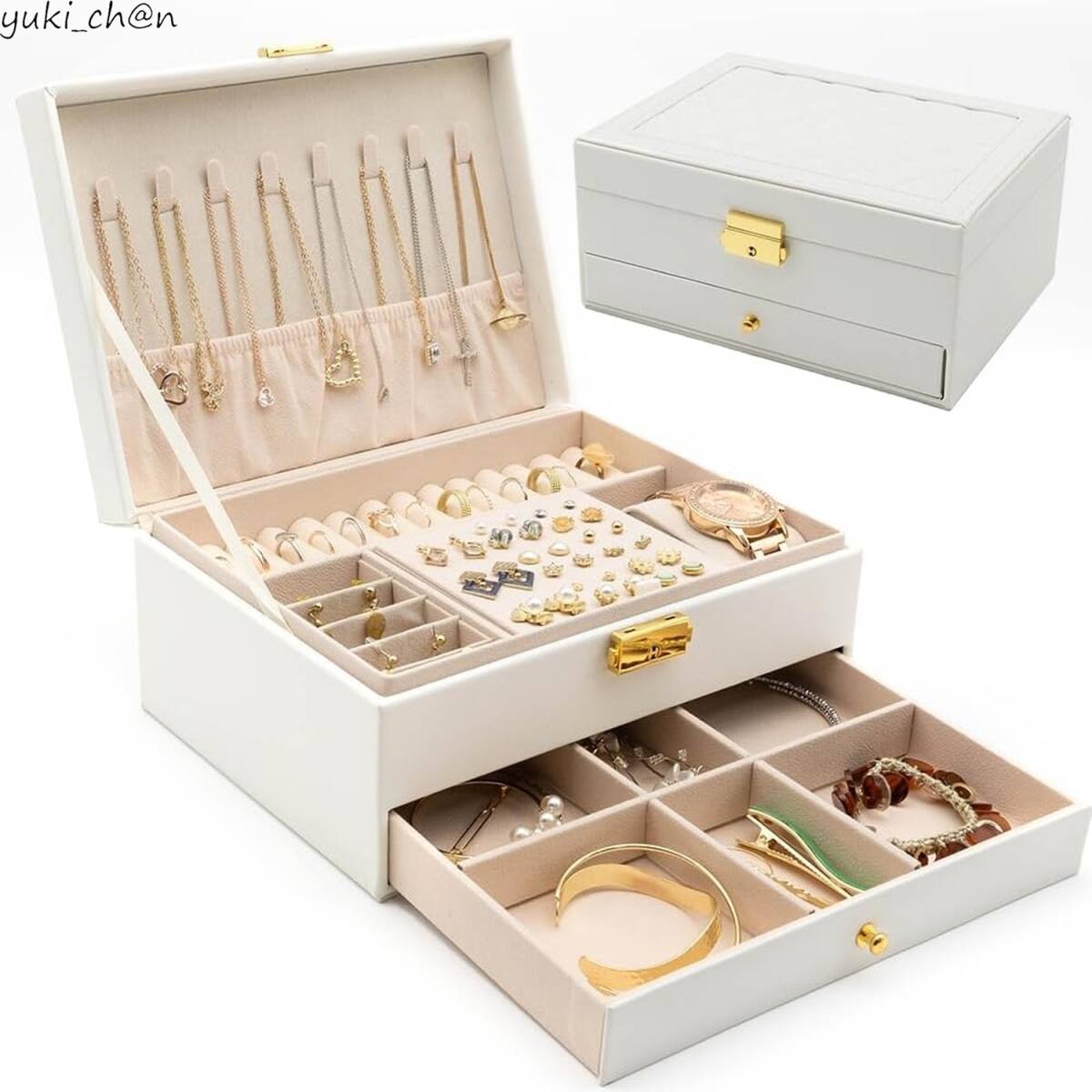 ジュエリーボックス ホワイト アクセサリーケース 2段式 ジュエリー収納 宝石箱 指輪ボックス アクセサリートレー 鍵付き 小物入れ