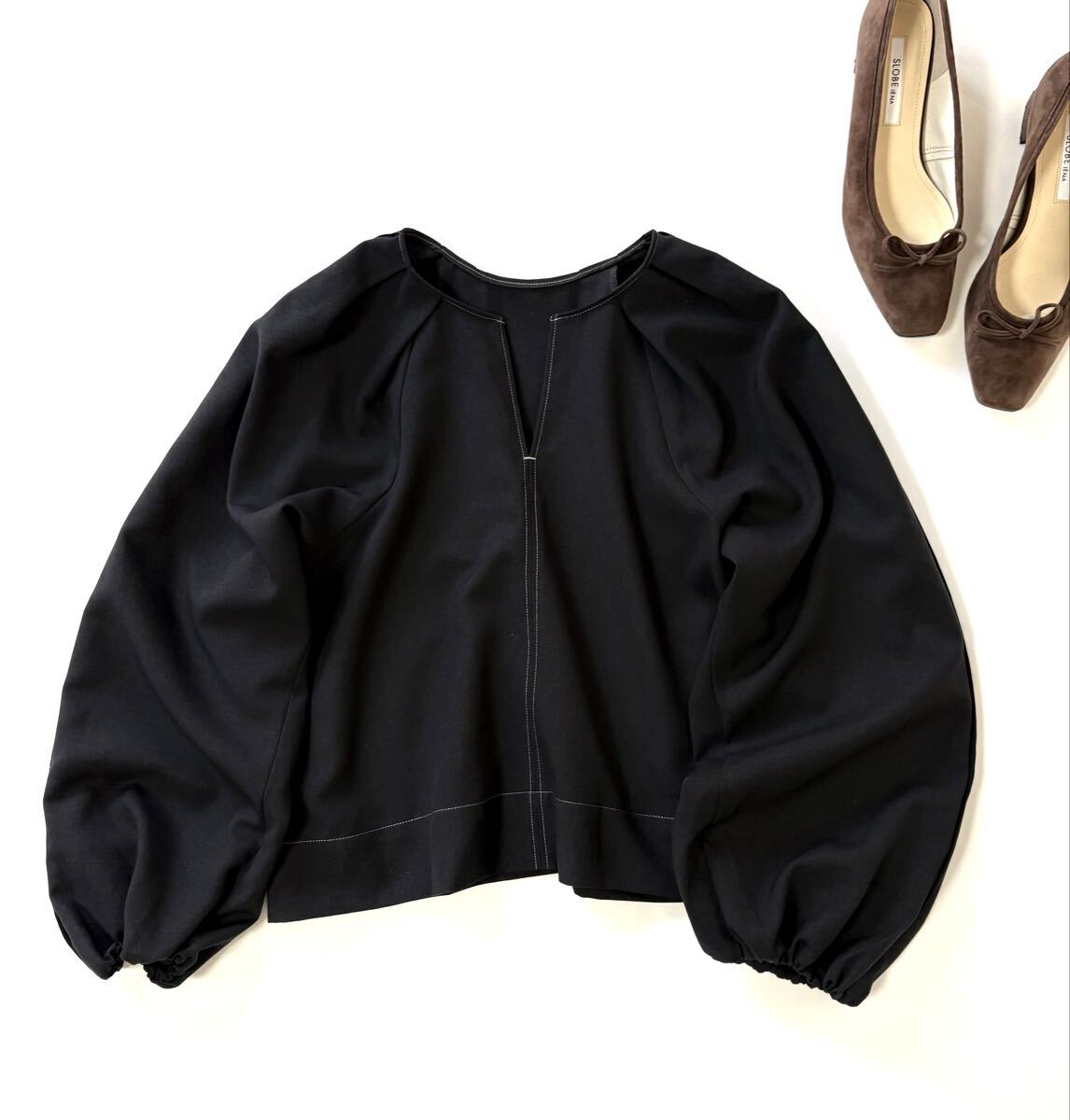 「ユナイテッドアローズ エメルリファインズ」のトップス、ブラウスです。サイズ・・・フリー(身幅約49cm、着丈約52cm)。素材・・・ポリエステル100%。カラー・・・黒。定価・・・9900円。シーズンレスで着やすい肉感のポリエステル素材のブラウスです。ボリュームのある袖とパイピングがアクセントになっています。袖元はゴムになっています。2023年に購入し、数回の使用です。目立つダメージはないですが、あくまでユーズドですので、神経質な方はご遠慮ください。よろしくお願いいたします。