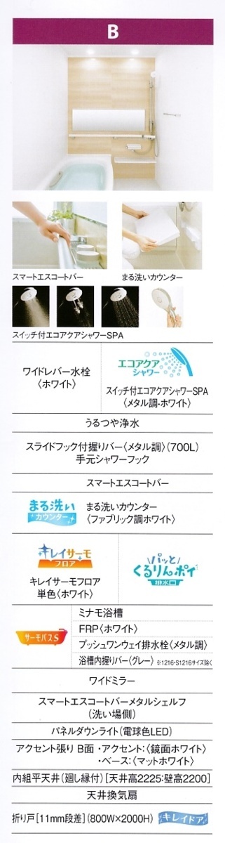 ◎LIXIL戸建住宅システムバス『リデア 』1216サイズ・Bタイプ 即決価格は、商品定価1.300.000円の68%OFFで、457.600円【消費税込】 ◆据付必要寸法は、1260×1670×H2750mm。 ◆あなたのライフスタイルにぴったりのバスルーム『リデア』 ◆壁は、アクセントパネル張り。クオーレポプラは、奥深い質感、見る角度によって表情が変わる。 ◆床は、スポンジでキレイ。冷ヤッとしない。水はけがよく、すべりにくい『キレイサーモフロア』 ◆お湯をぬくたびに強い渦の力でゴミをまとめる『くるりんポイ排水口』 ◆極上の入浴感をかなえる『ミナモ浴槽』湯面の広がりと、開放感が感じられる浴槽です。 ◆折り戸です。汚れにくいスッキリデザインの『キレイドア』 ◆洗い場から浴槽への移動をエスコート、安心入浴をサポート。『スマートエスコートバー』 ◆たっぷり置けて、裏までキレイな『まる洗いカウンター』カウンターがまるごと壁からカンタンに外せます。 ◆ダブル保温構造で、最後のひとりまで、あたたかい『サーモバスS』 ◆スライドフック付握りバーが付いています。 ◆大粒の雨のような、やさしい浴び心地のシャワー『エコアクアシャワー』 ◆どの角度からもフィットするレザー調の大型ハンドル『ワイドレバー水栓』 ◆まぶしさを抑えた発光面で、低消費電力・長寿命のLED照明『パネルダウンライト』 ◆窓・追い焚きセットは価格に含まれていません。 ◆北海道仕様はお問い合わせください。 | |