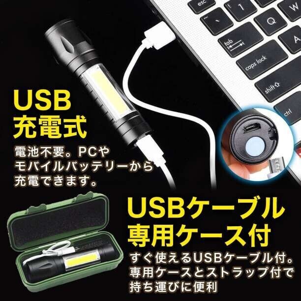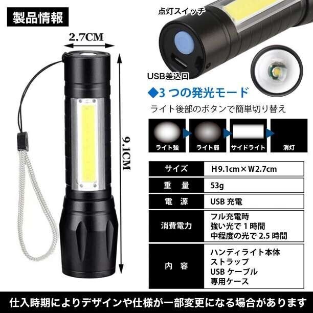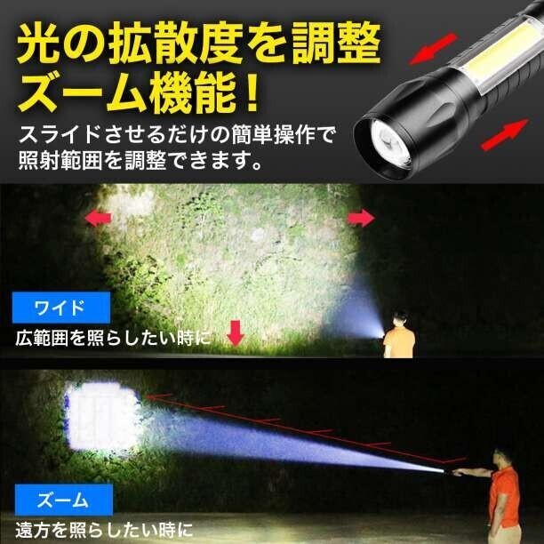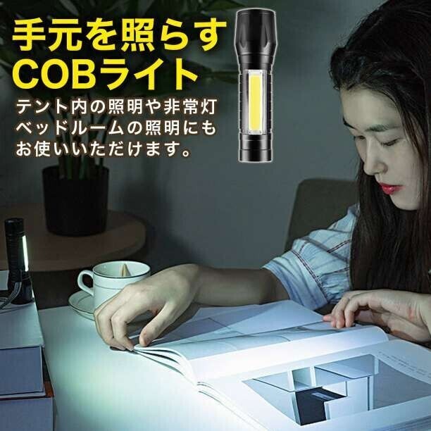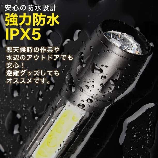 【3モード片手で簡単に制御】片手で簡単にスイッチを制御できて、3つの照明モード(高輝度→SOS→COB)をすばやく切り替えることができます。