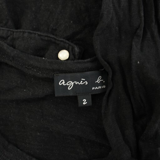 アニエスベー agnes b. カーディガン スナップボタン 麻 リネン 長袖 2 黒 ブラック ED17JDJ6 /HN レディース