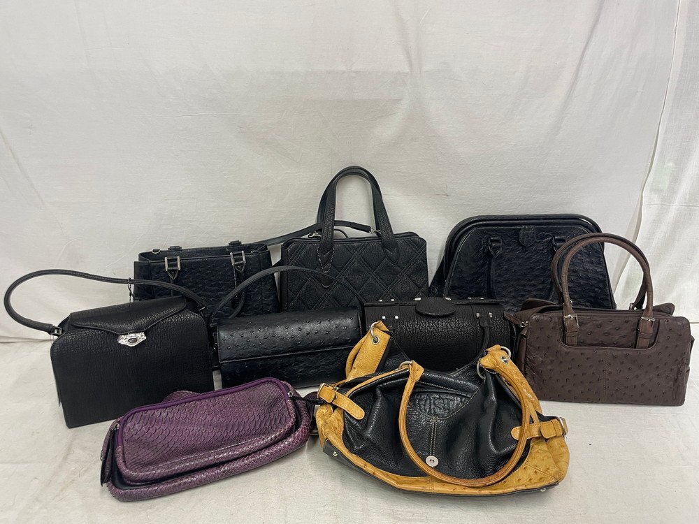 | 商品名 | 【8PB127】JRA認定 バッグ 鞄 9点まとめ Valigeria CLENCEE 他 オーストリッチ レザー 本革 ハンドバッグ トート ブラック パープル |