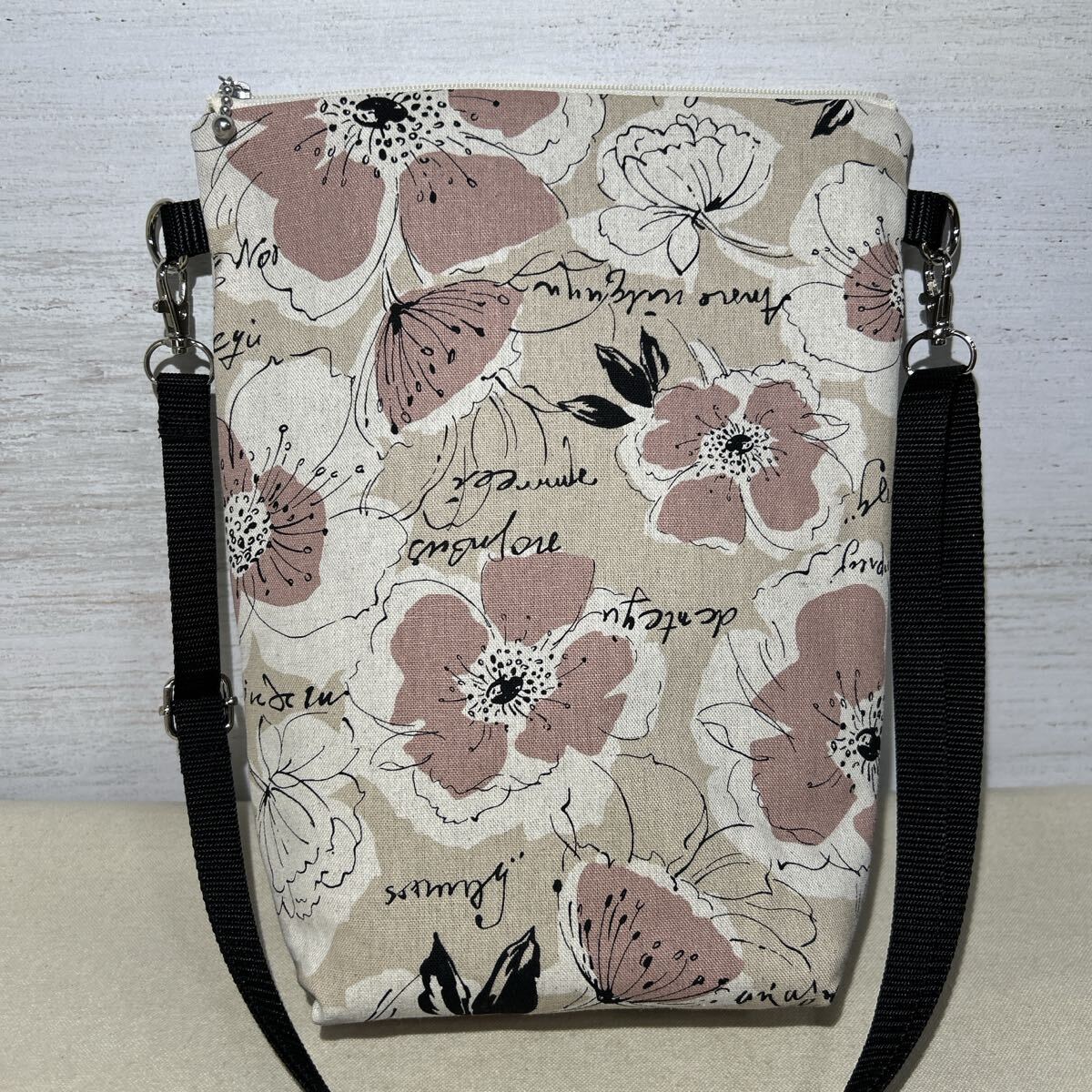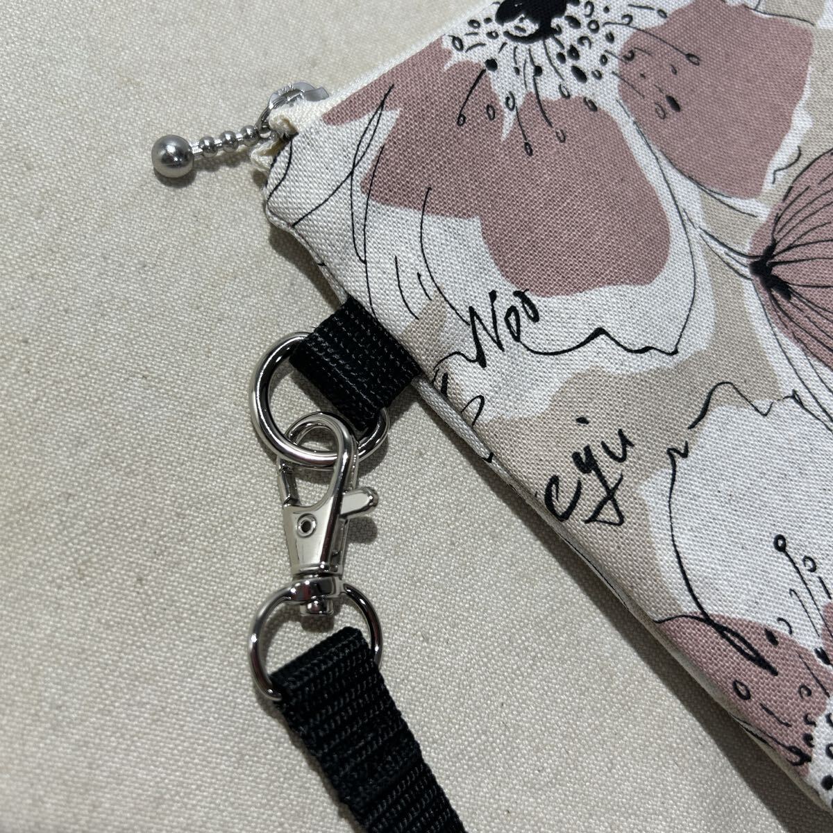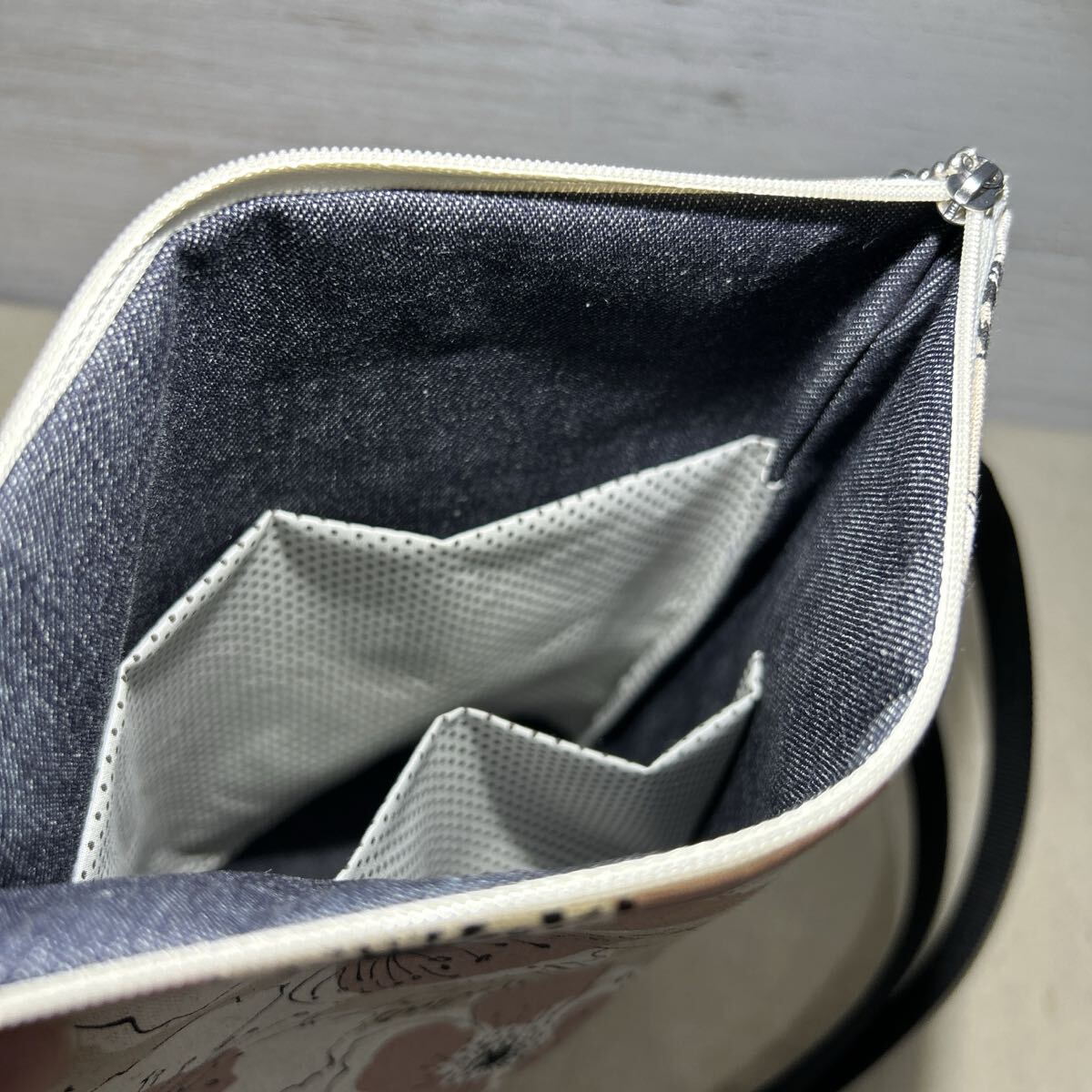 長財布が入る縦型ポシェット/ショルダーバッグ/斜めがけ/ハンドメイド/ 北欧花ピンク