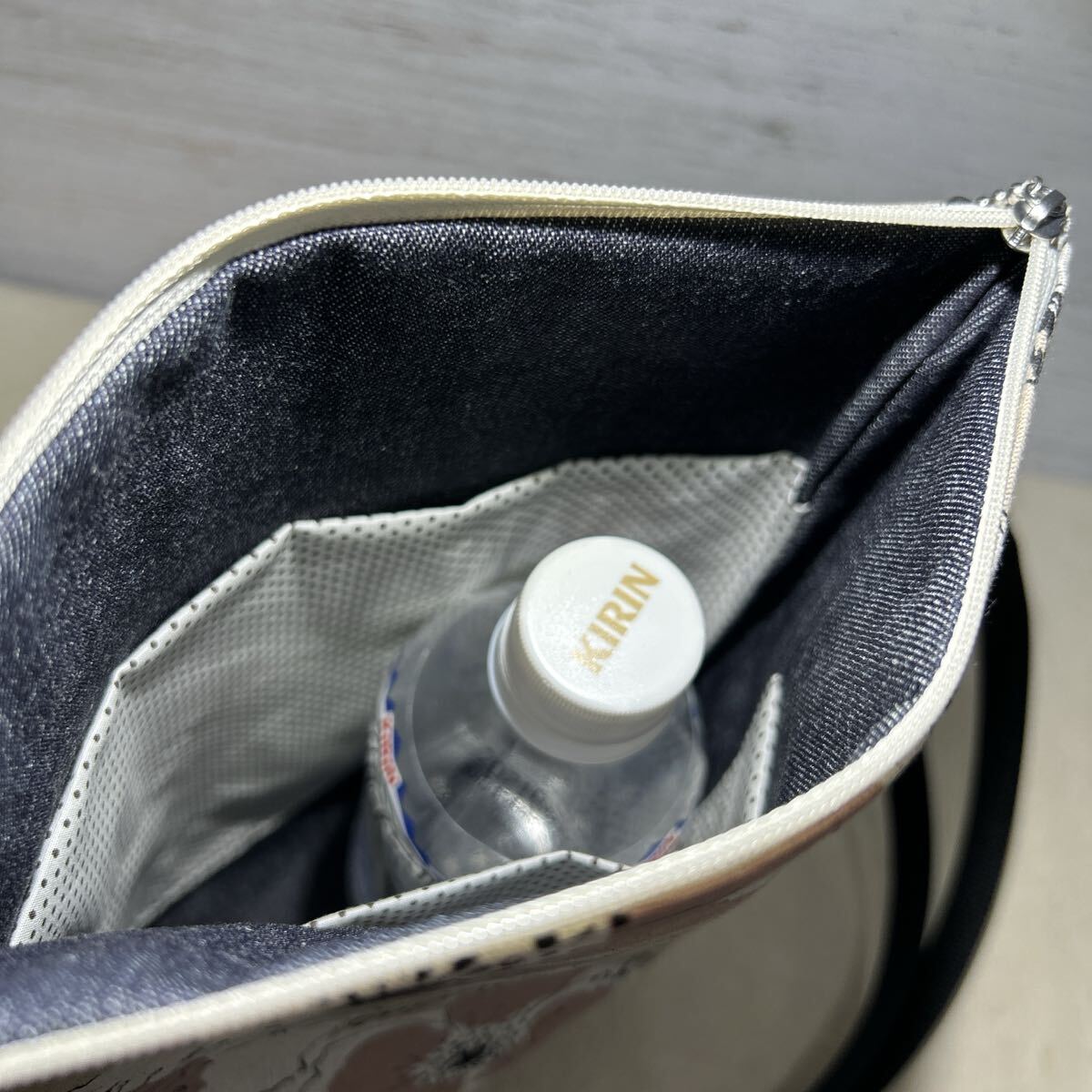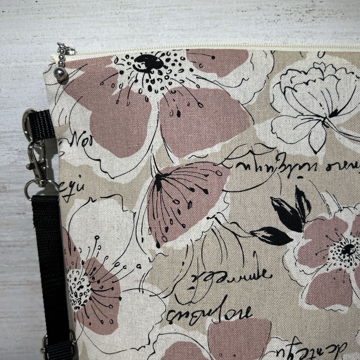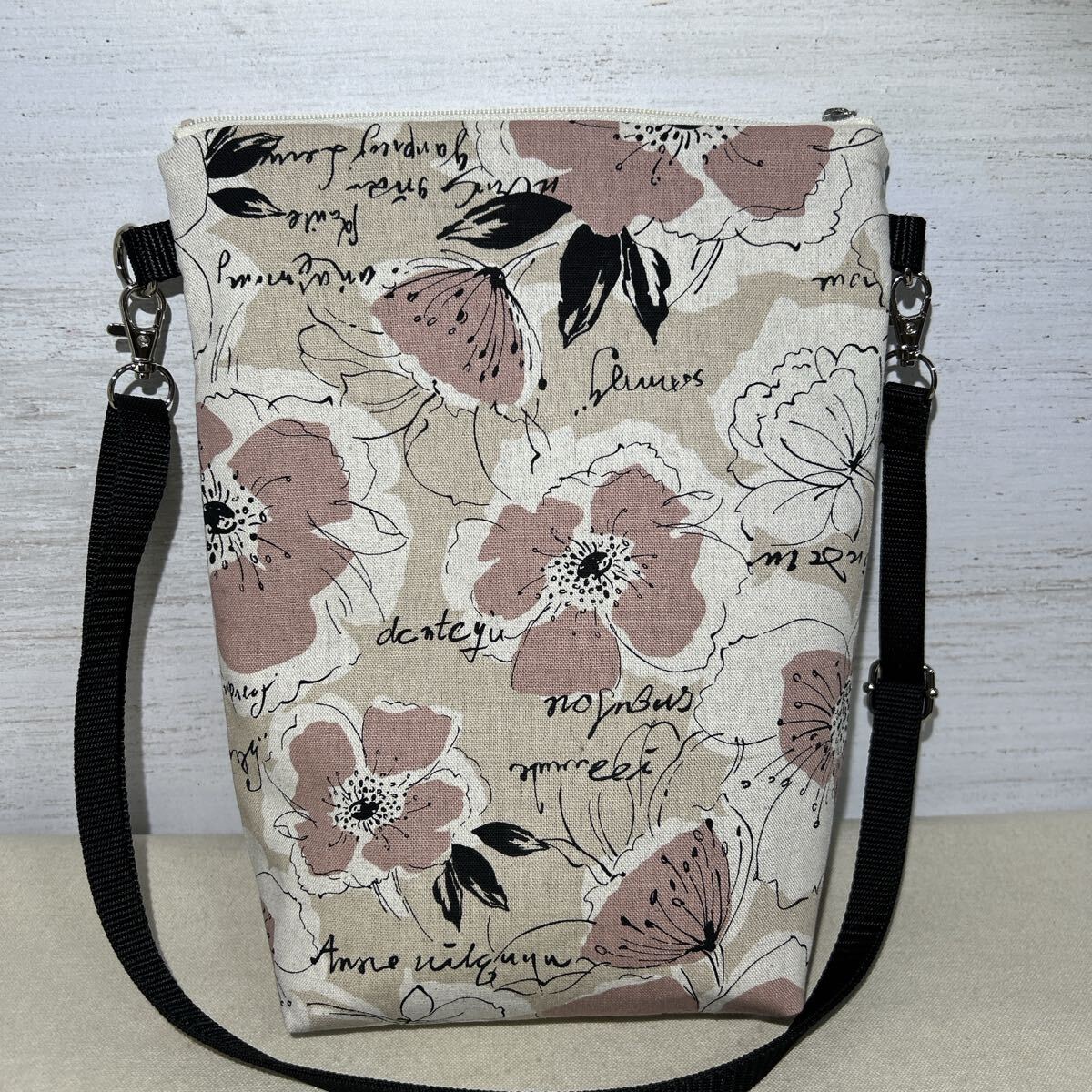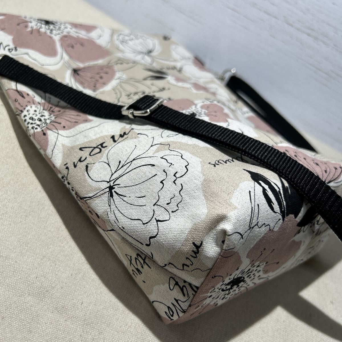 長財布が入る縦型ポシェット/ショルダーバッグ/斜めがけ/ハンドメイド/ 北欧花ピンク