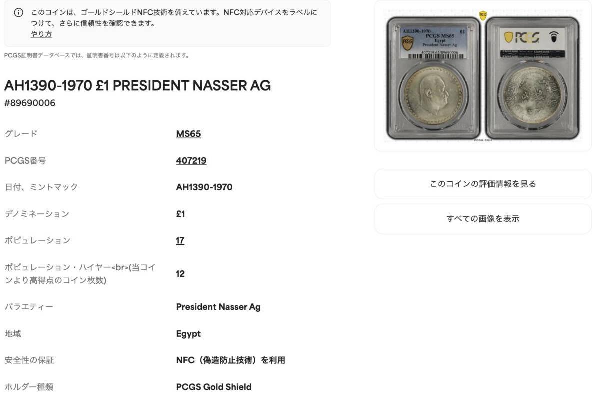 ★金終 【PCGS MS65】AH1390-1970 エジプト ポンド銀貨 ナセル大統領 完全未使用 //世界コイン 古銭 貨幣 硬貨【決済期限火曜日】