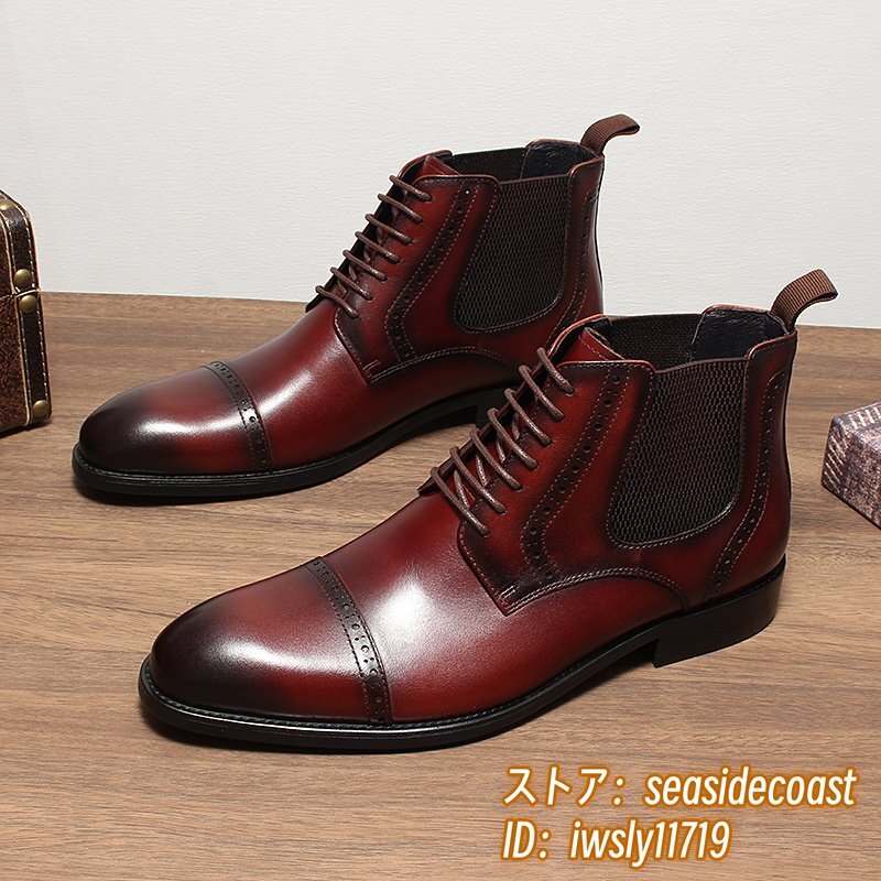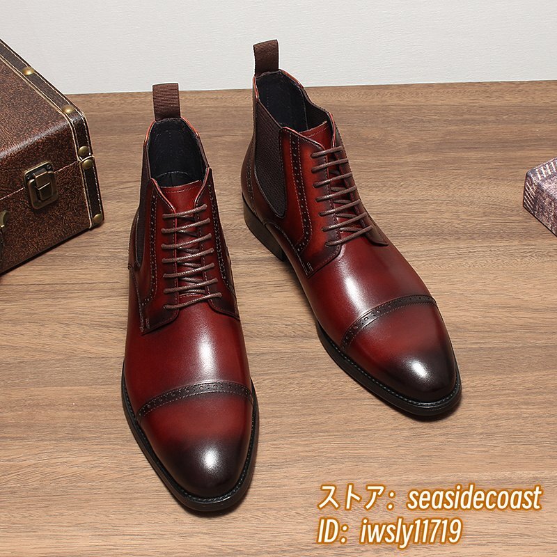 極美品◆マーティンブーツ メンズブーツ 本革 レザーブーツ イギリス風 皮靴 ハイカット ショートブーツ フォーマル 新品 レッド 24.5cm