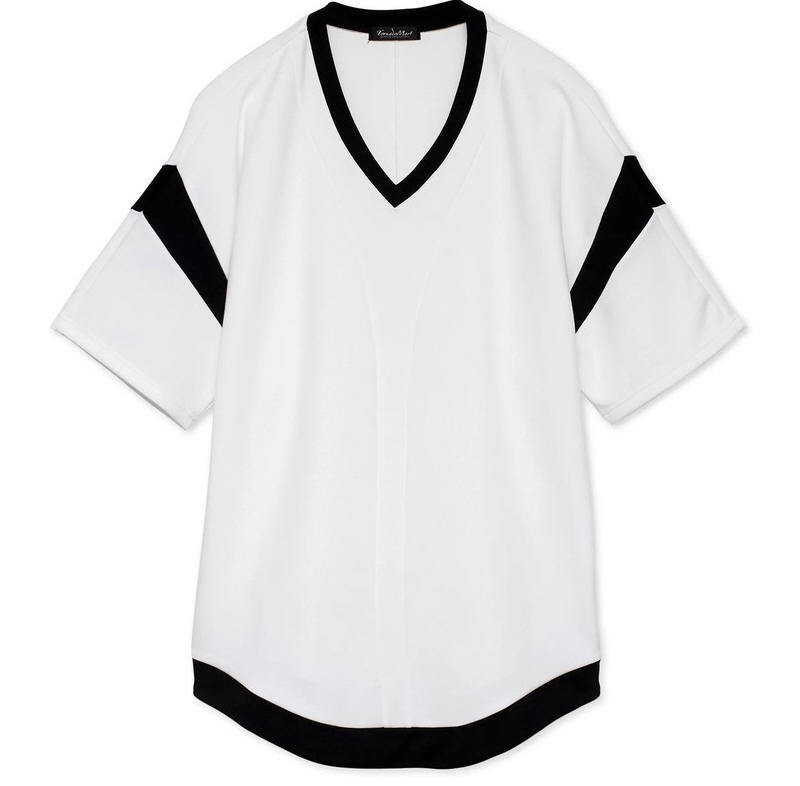 1.4万 新品 L トルネードマート バイカラーロングVネックカットソー半袖 ホワイト×ブラック サンプル 721