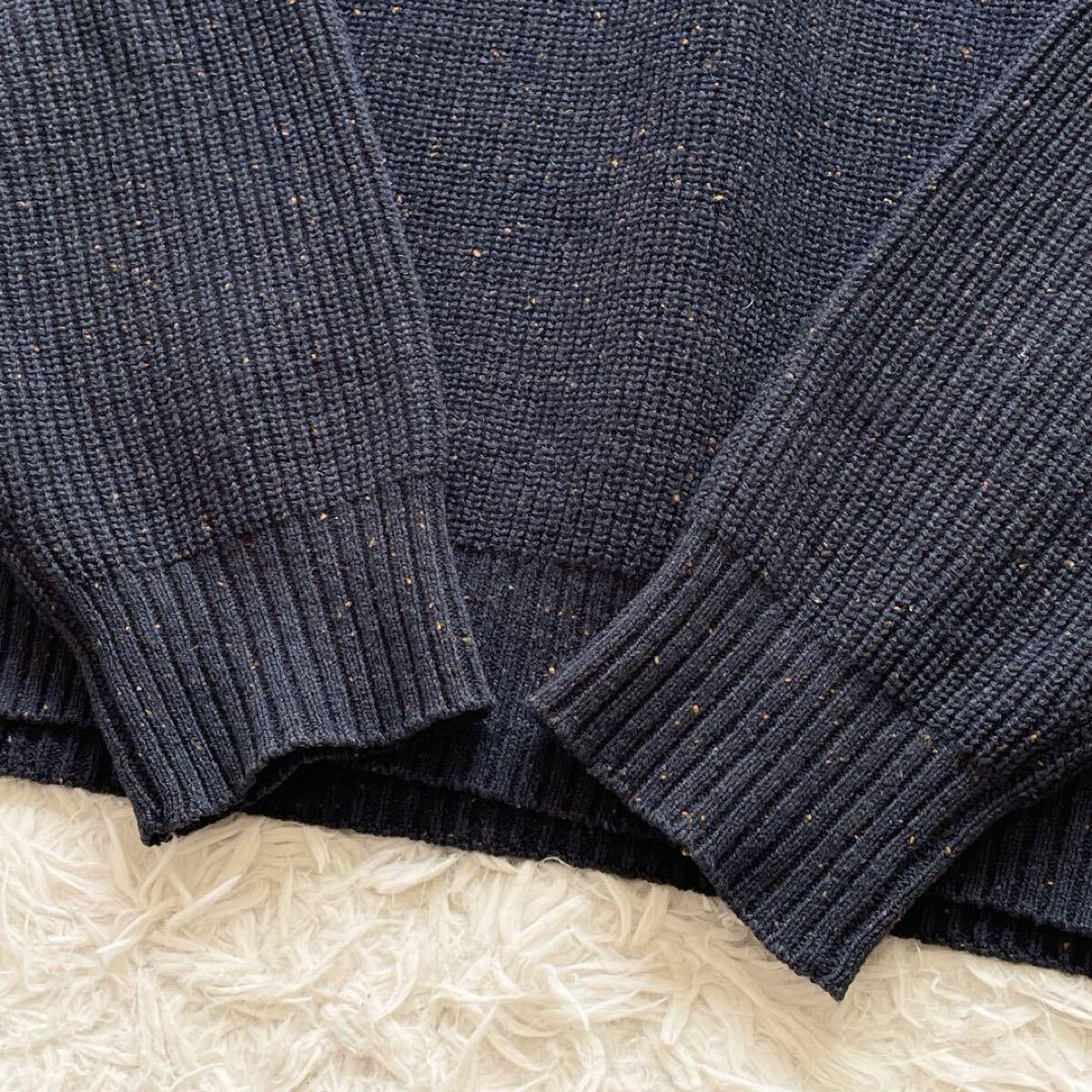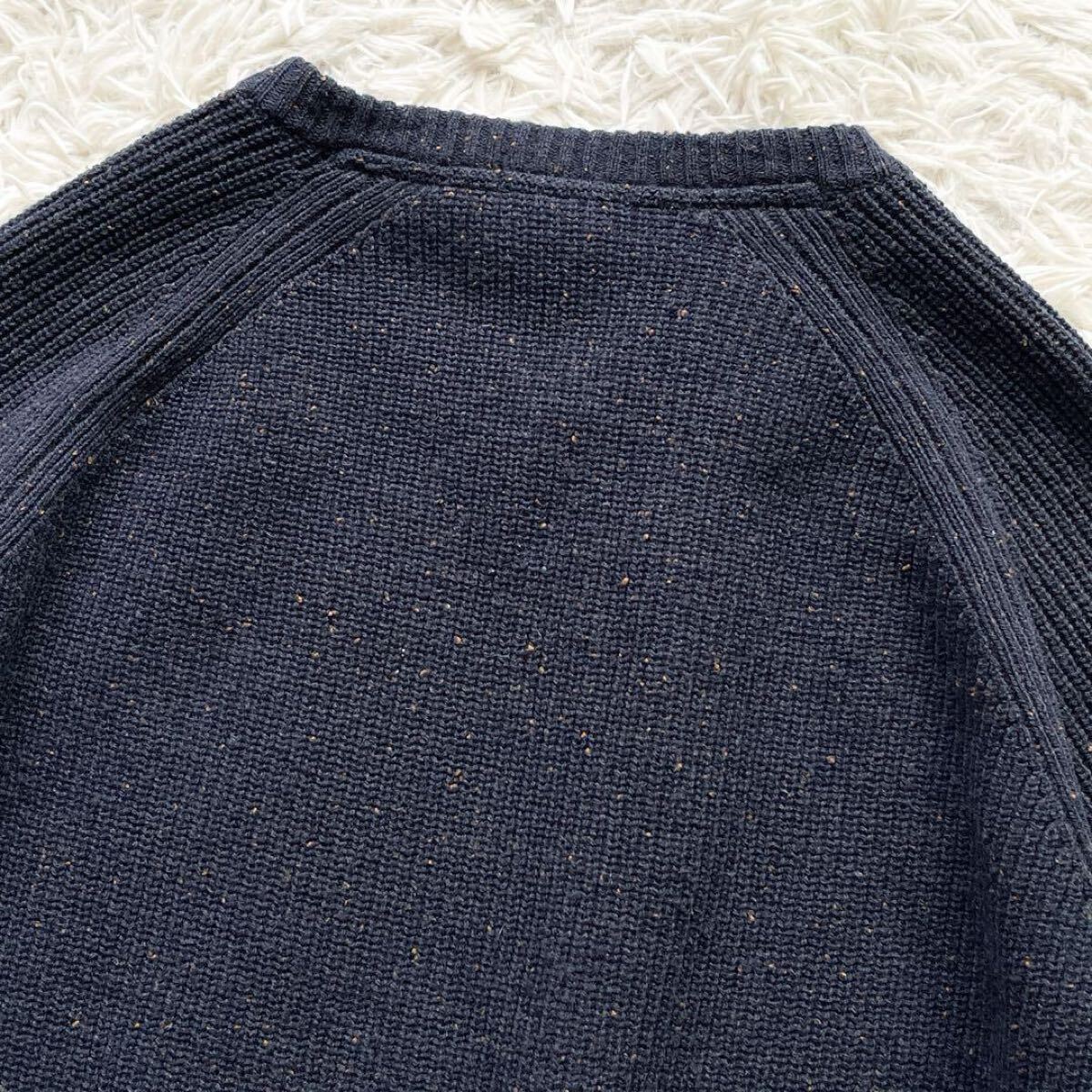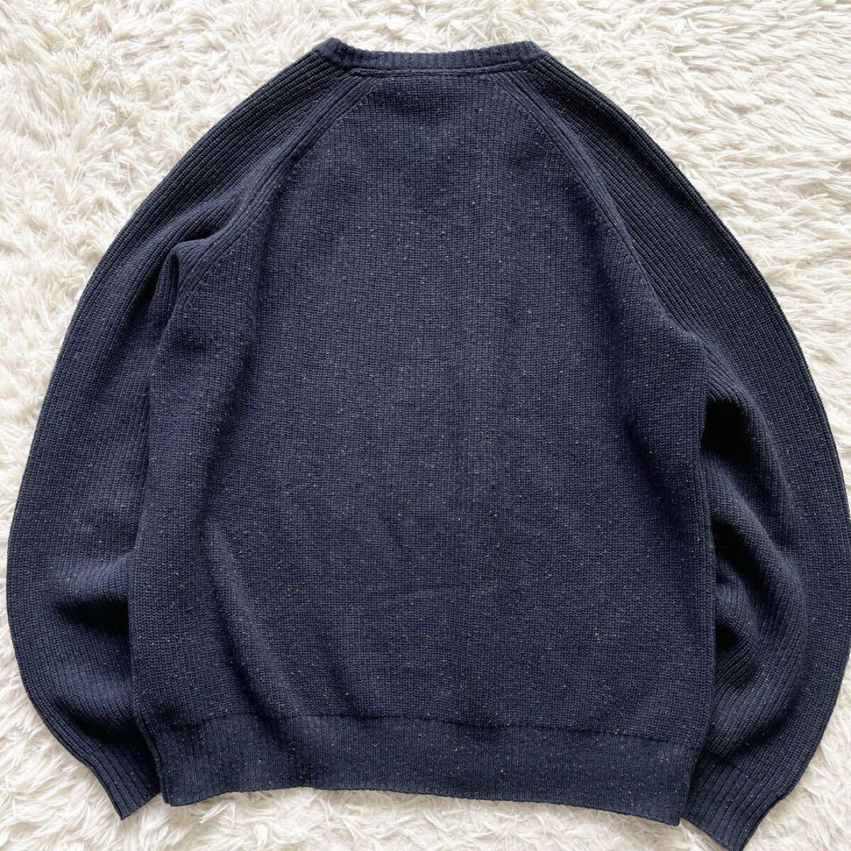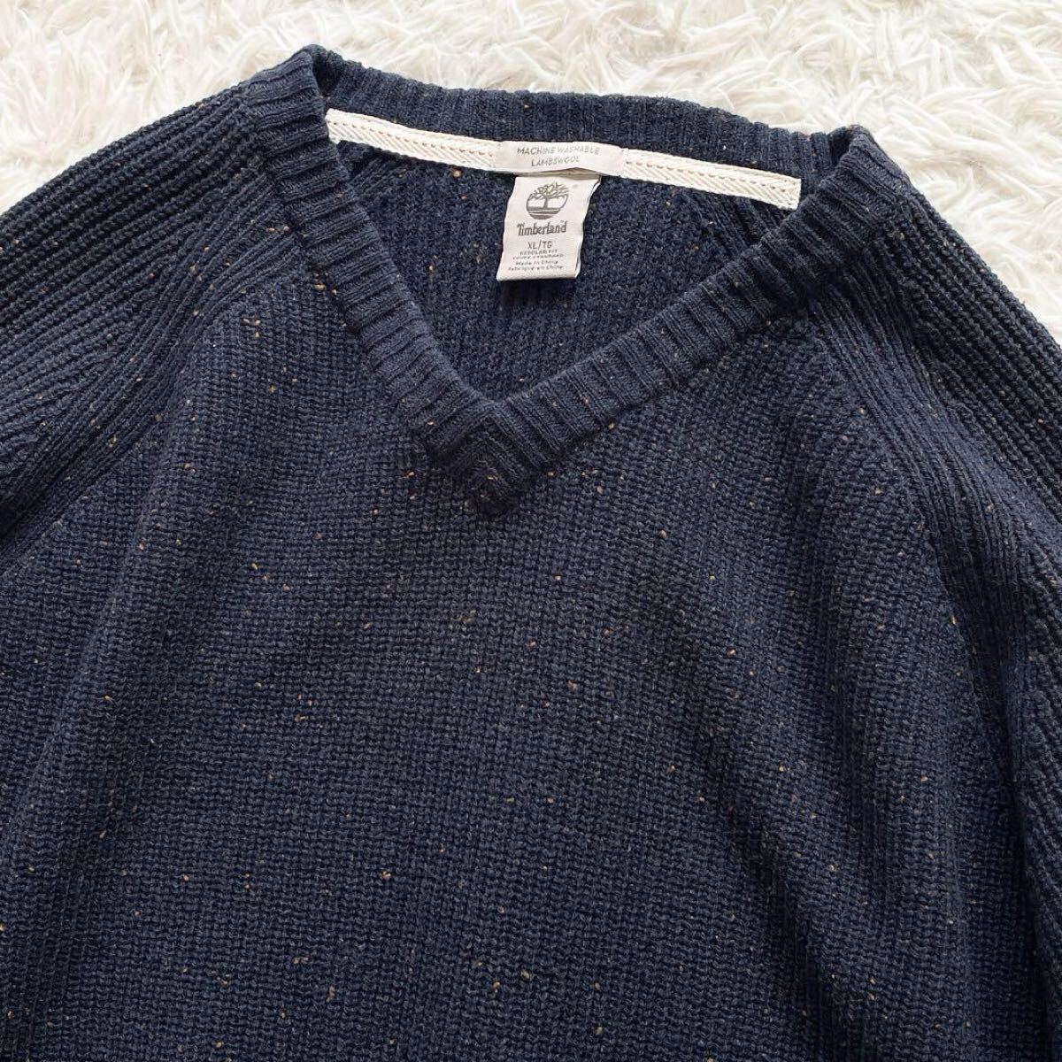 美品 XLサイズ Timberland ラムウール ニット 本革 レザーロゴパッチ ウォッシャブル ネップ ラグラン袖 ネイビー系 メンズ ティンバーランド セーター 紺系 洗える アウトドア アメカジ